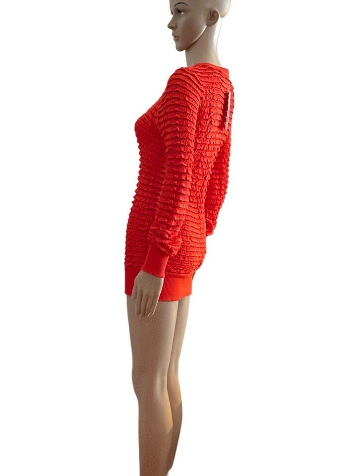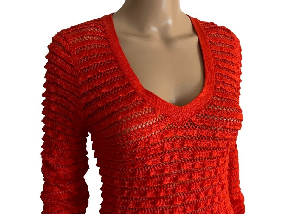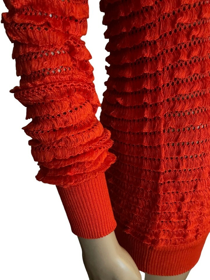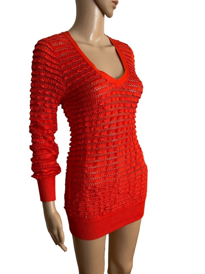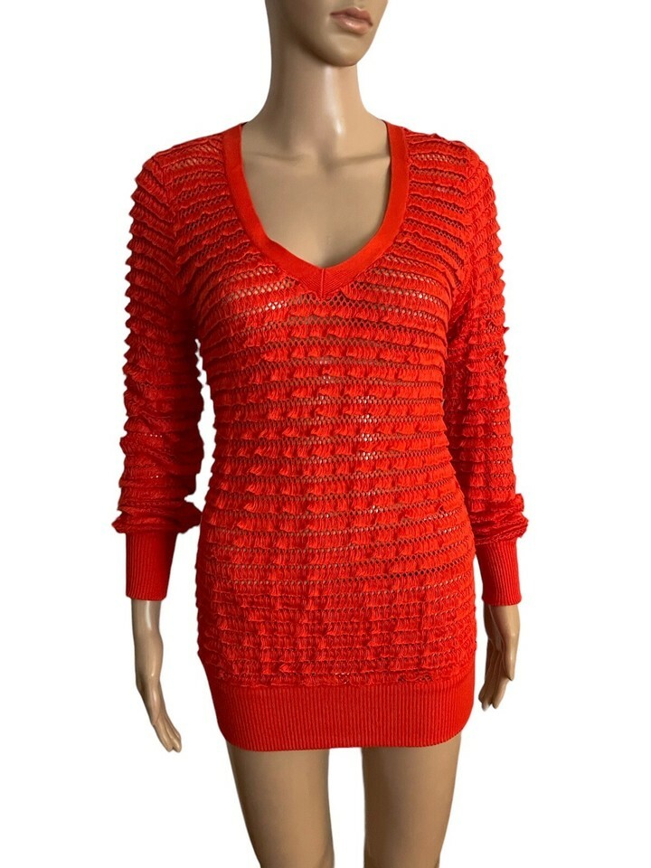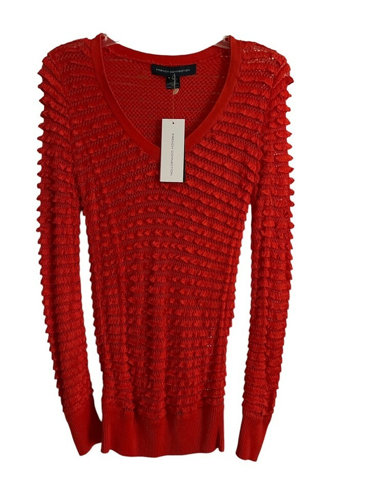 NWT Women’s French Connection Mini Sweater Dress Orange Textured Small Eyelet