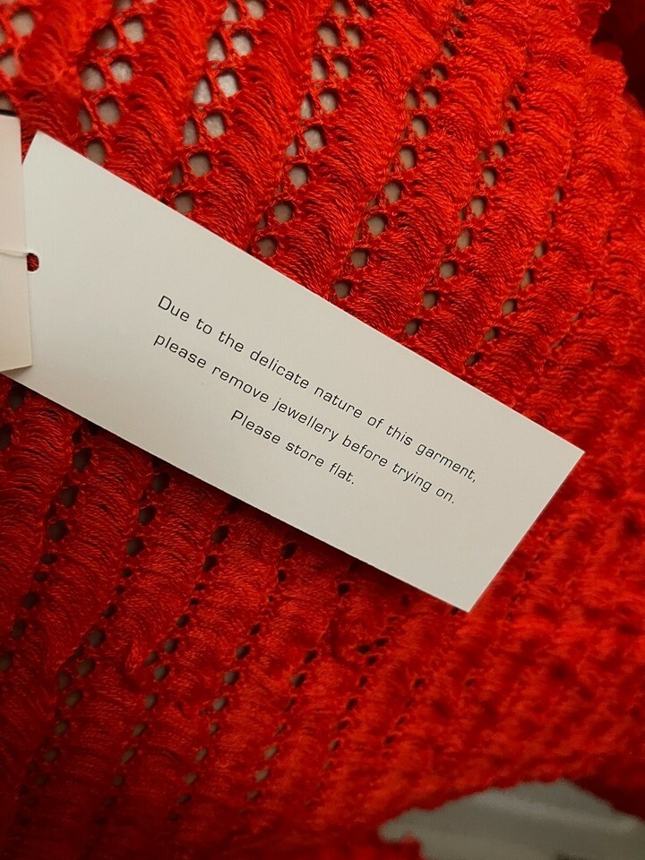 Women?s French Connection Mini Sweater Dress Orange Textured Eyelet Detail.