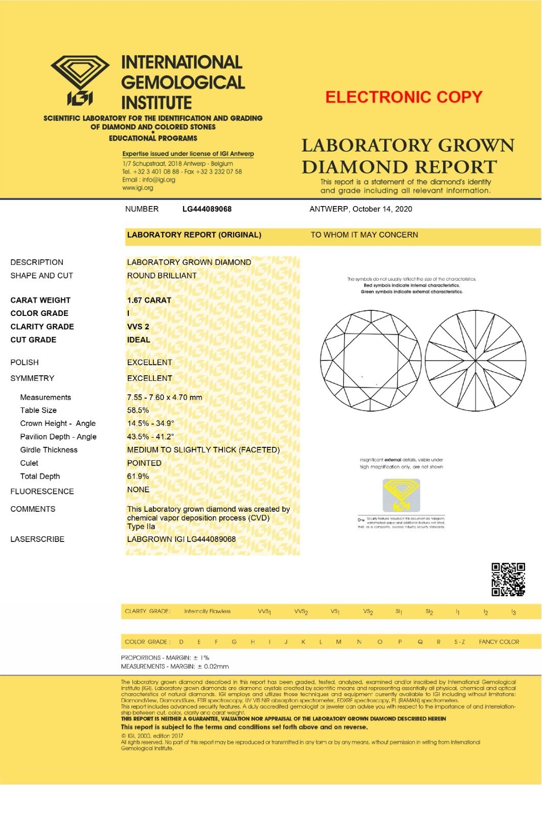 Lab Grown 1.67 Ct Round Cut Igi Certified and similar items