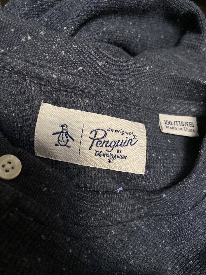 XXL Penguin Men's Waffle Dark Sapphire Blue Speckled Henley Shirt Original