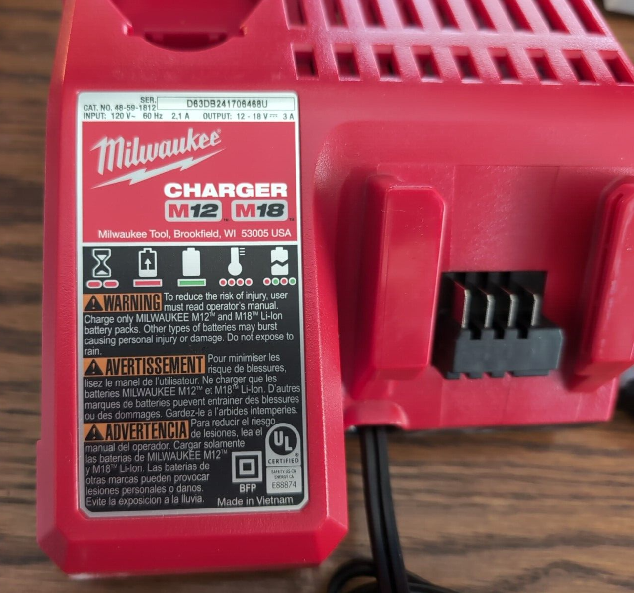 Up for sale is a MILWAUKEE 18V Battery Charger M18 48-59-1812 18 VOLT 12V
