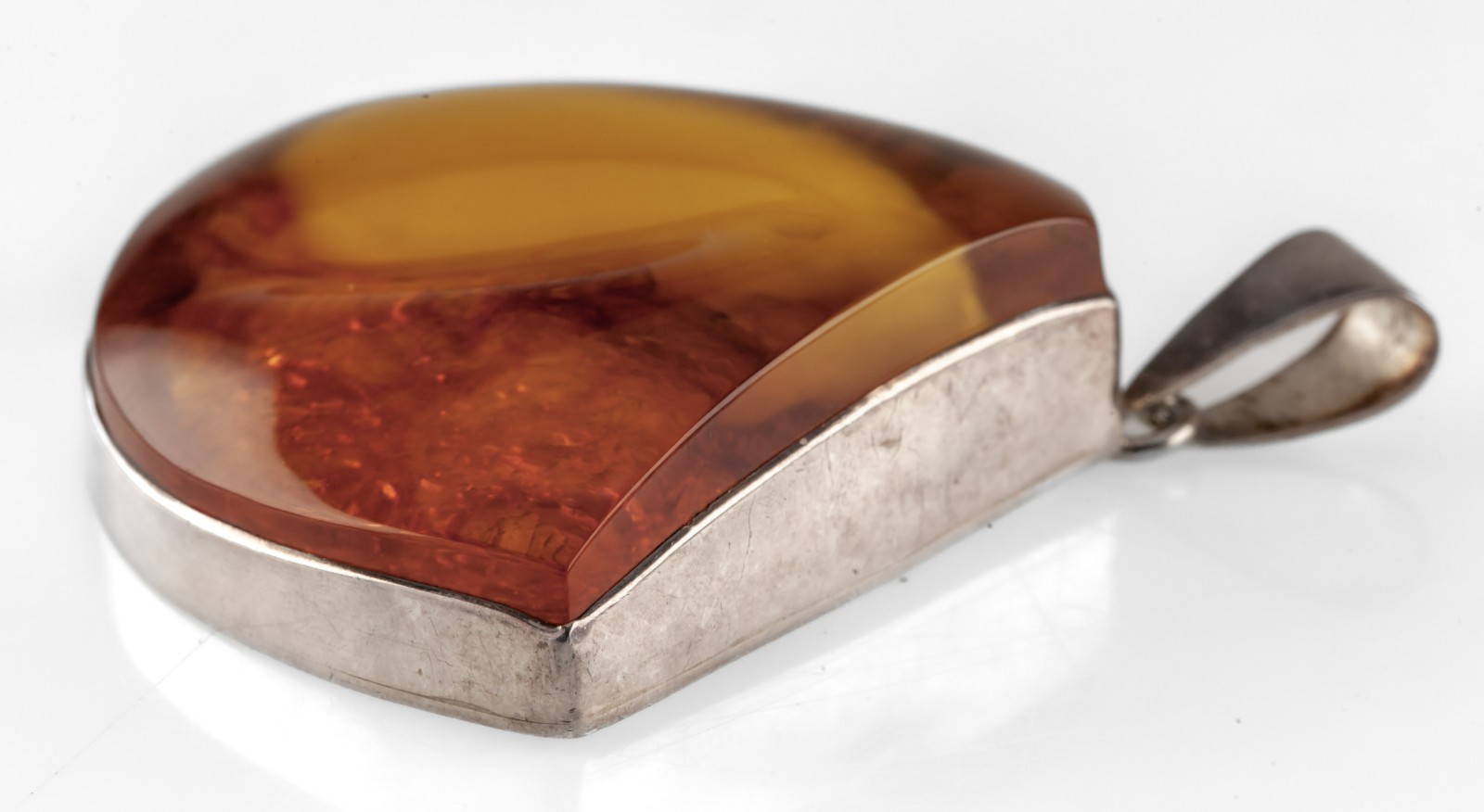 Magnificent Sterling Silver Baltic Cognac Amber Large Pendant