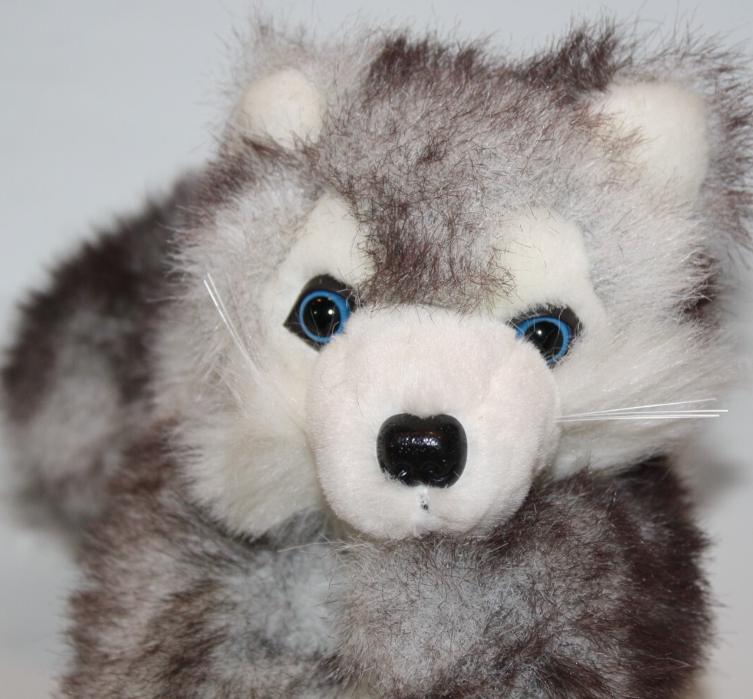 Husky Puppy Dog 12" Furry Black White Gray Plush Blue Eyes Soft Stuffed Toy Wolf