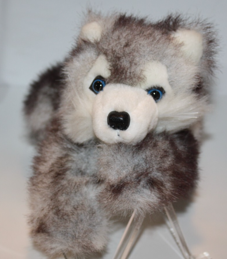 Condition: Very cute plush Husky or Wolf, Clean and Nice Condition, No Seam/Tush Tag, Displayed on a stand that is Not Included. Smoke-free environment