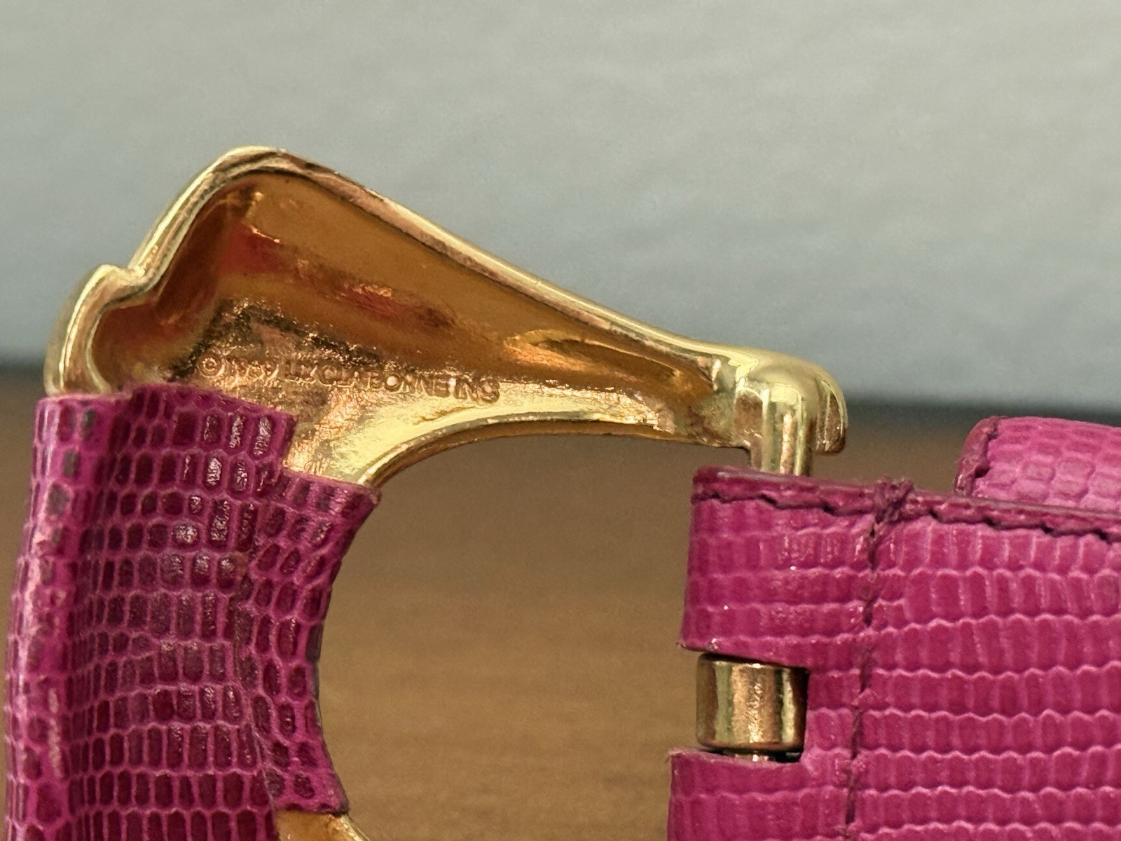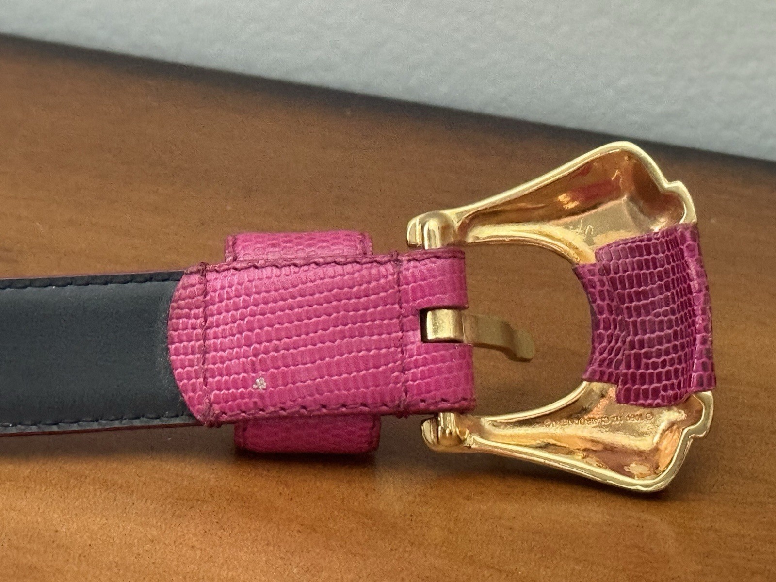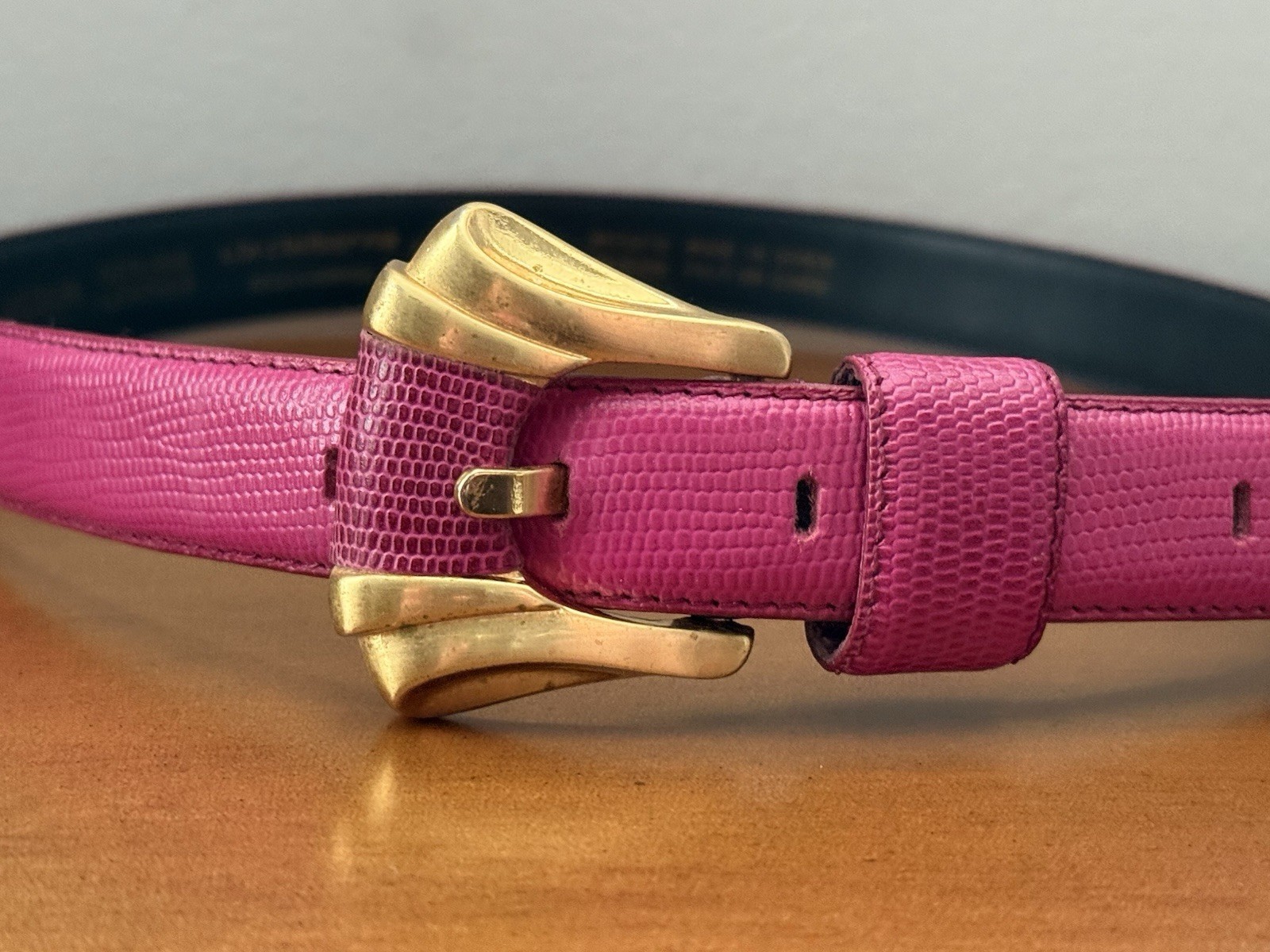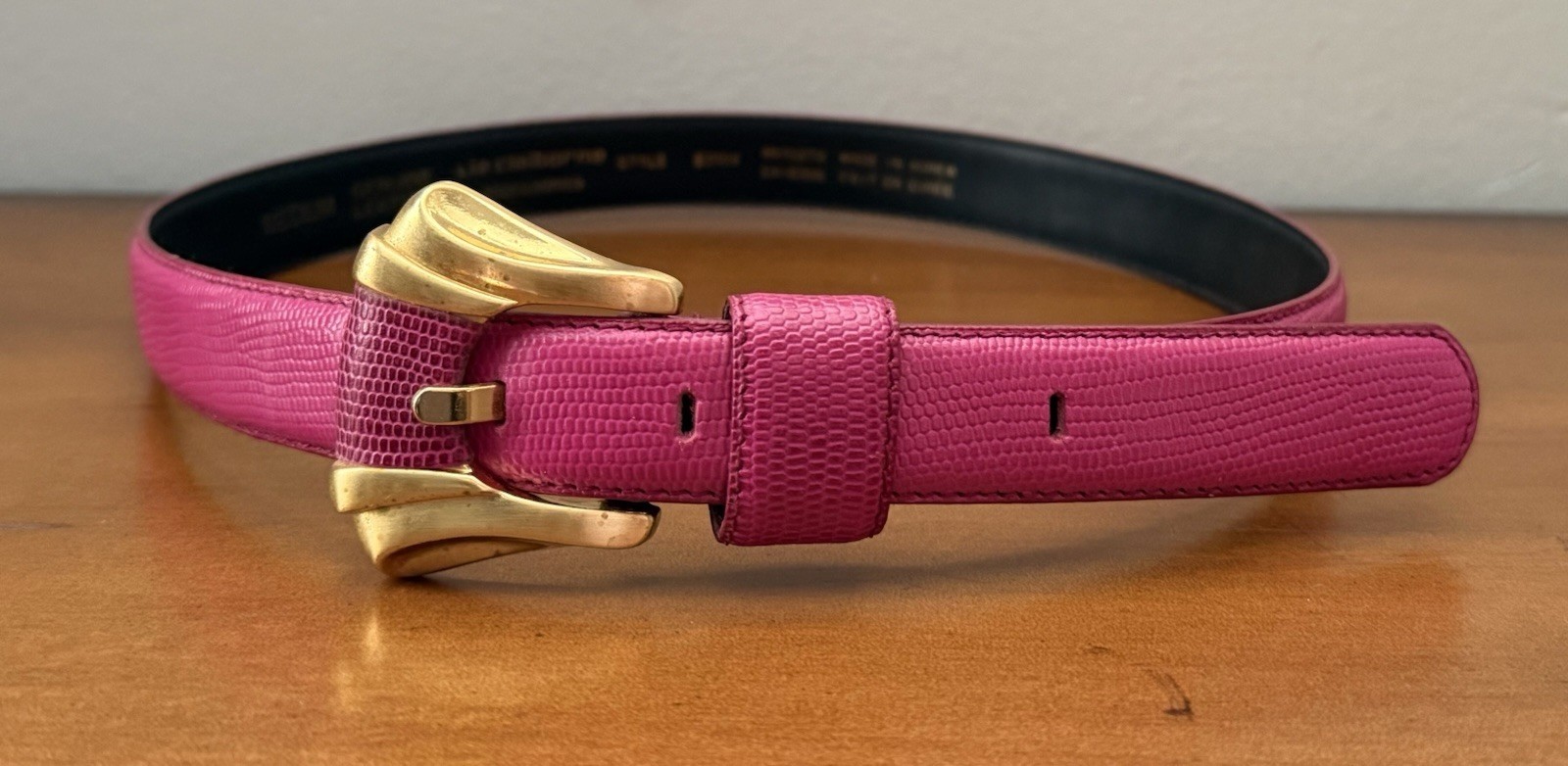 VTG 1980's Liz Claiborne Pink Brass Leather Snakeskin Belt Women’s Medium EUC