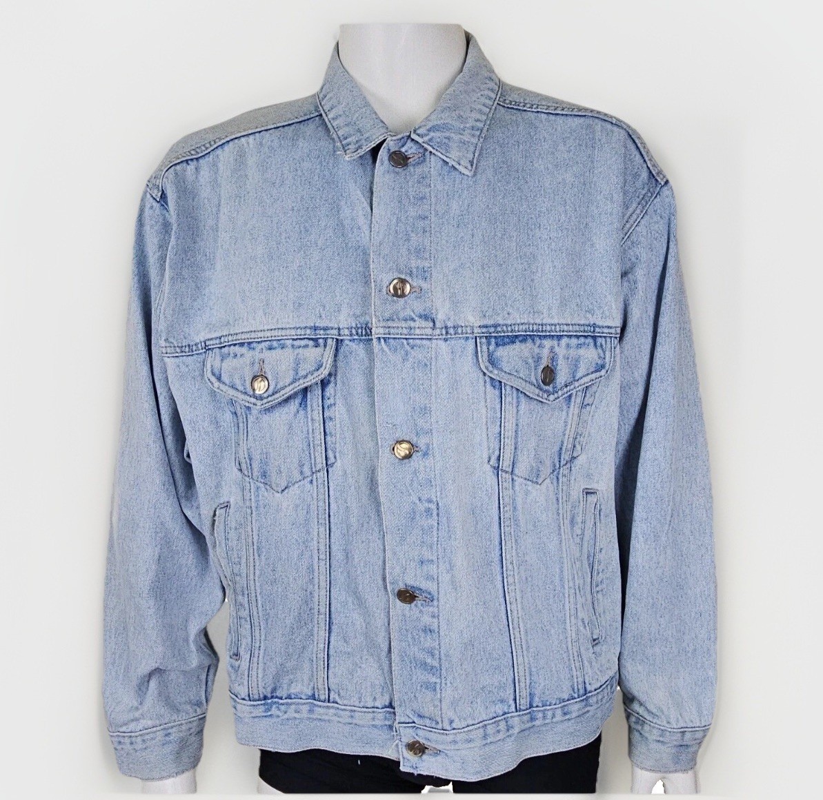 Y2K Denim Jacket Mens Sz L Pepsi Distressed Trucker Blue Jean 90s Relaxed Fit