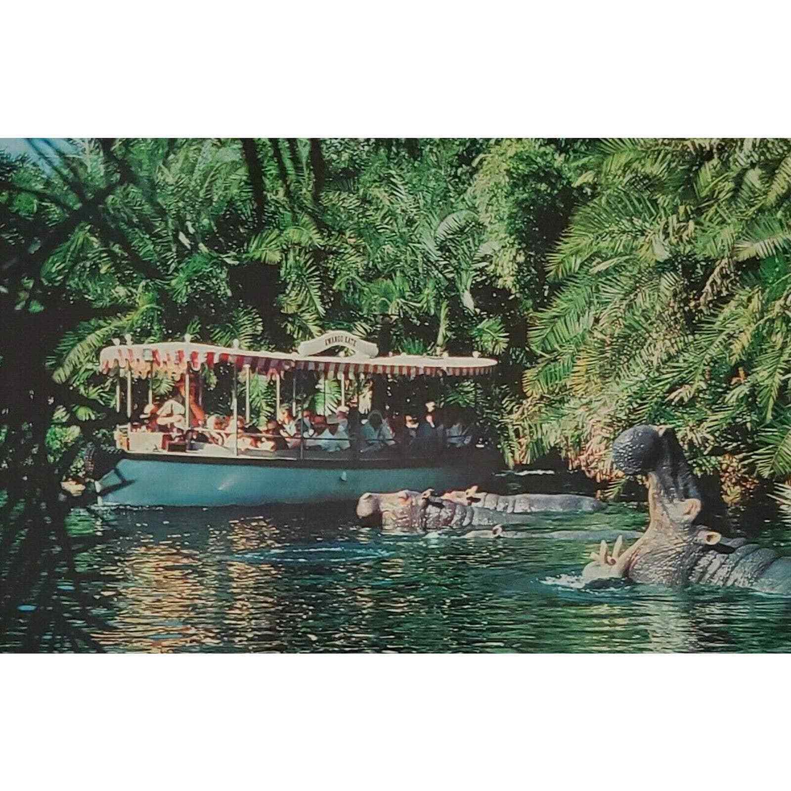 Jungle Cruise Walt Disney World Boat Hippos Orlando Florida Postcard