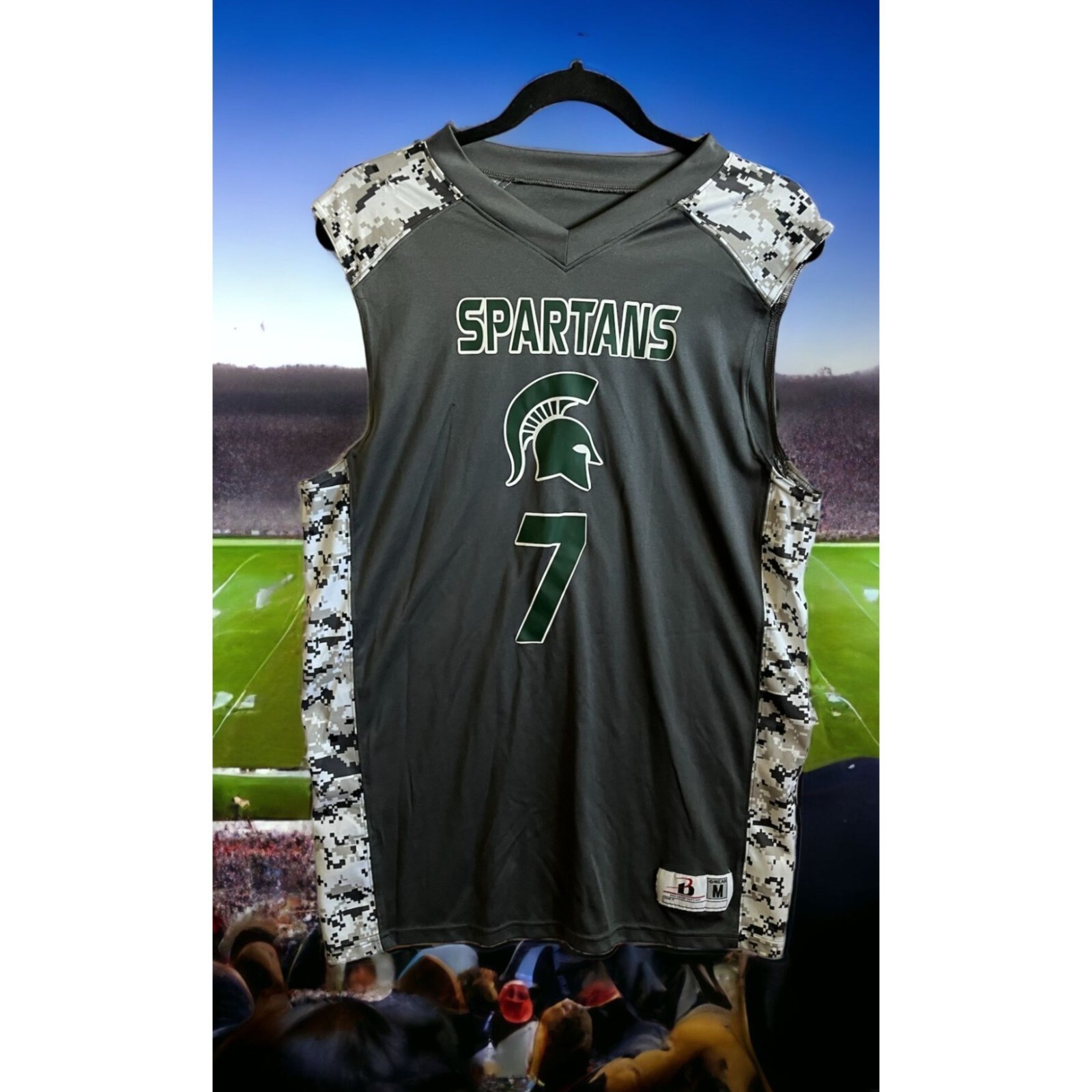badgersport b-wear michigan state spartans gray camo tank top size M