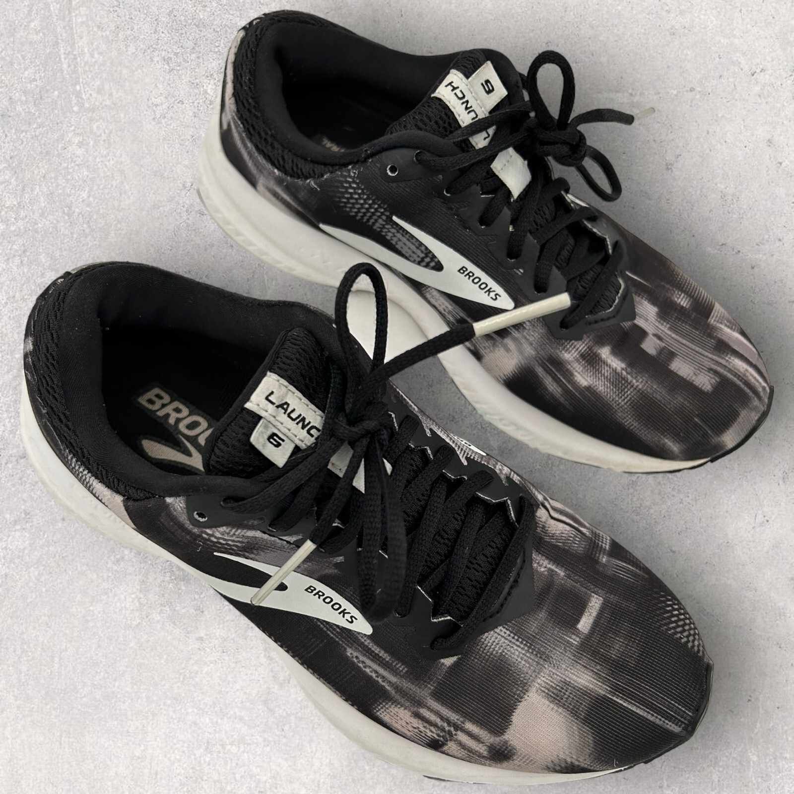Brooks Womens Launch 6 BLACK/PRIMER/OYSTER Running Shoes Sneakers Size 6.5B EUC