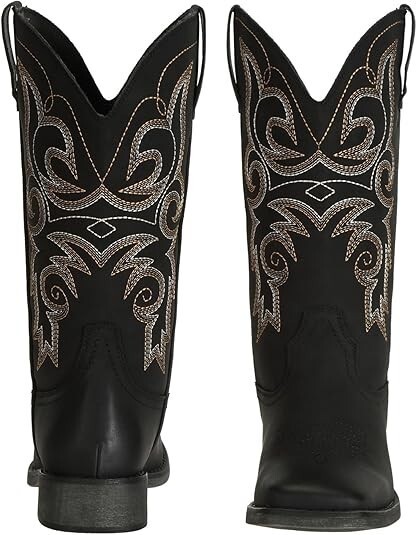 PREMIUM EMBROIDERY: These cowgirl boots with classic western embroidery on shaft and foot. White stitching accents the black faux leather upper, adds uniqueness and fashion of the western boot.