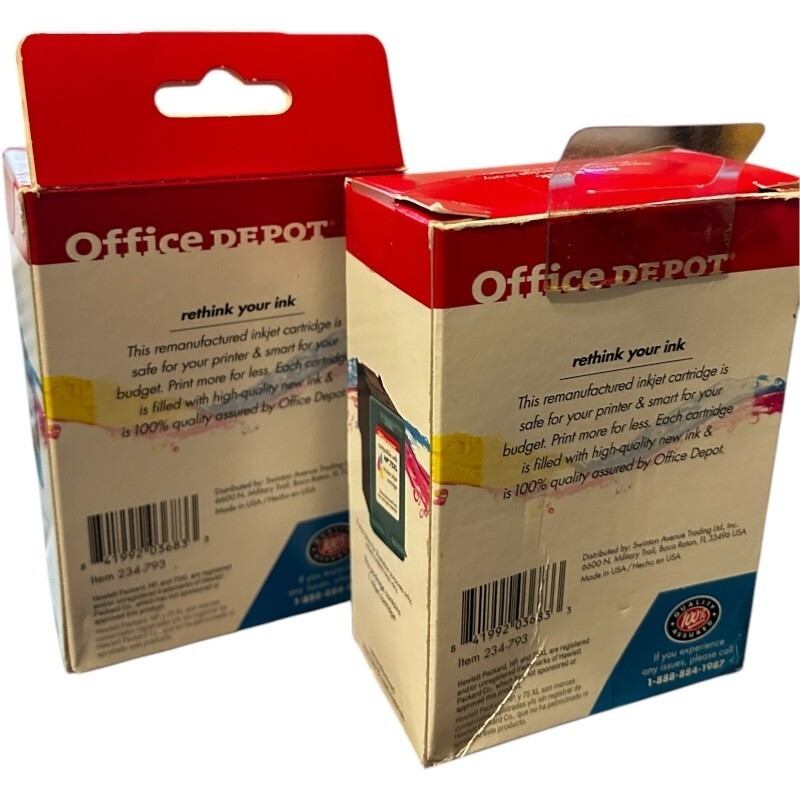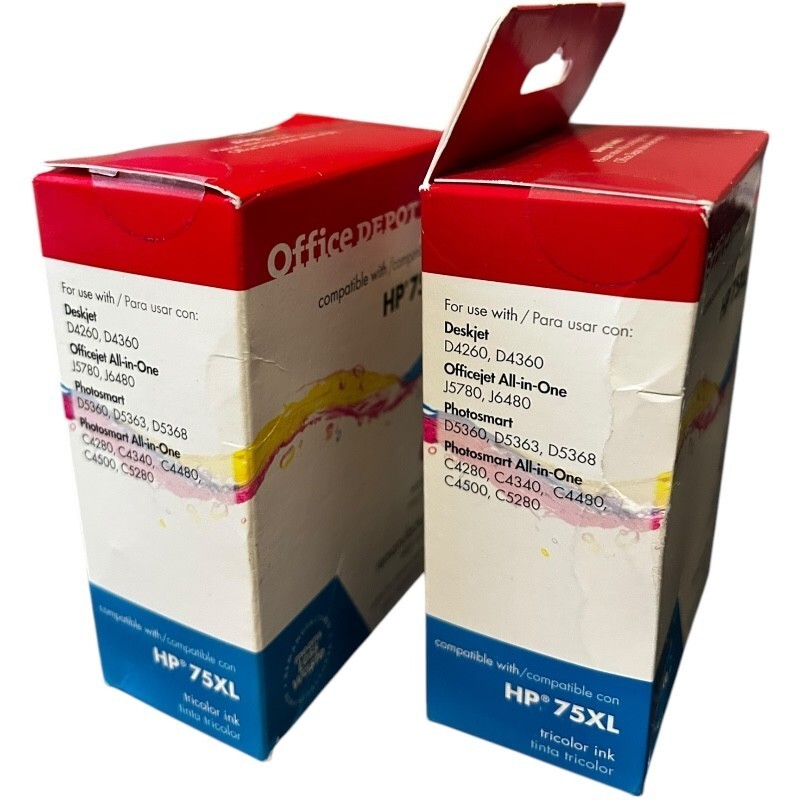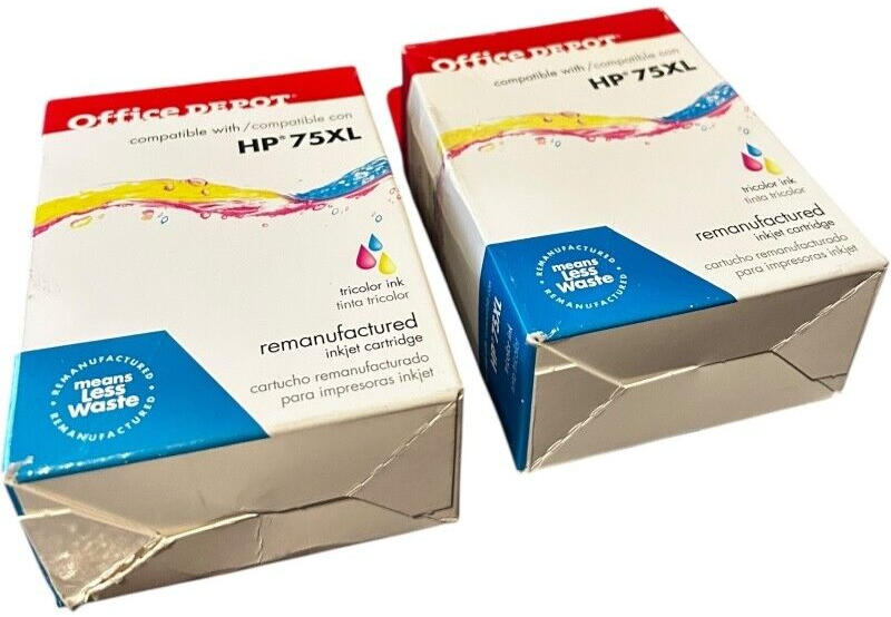 2 packs - Office Depot Ink Cartridges comparable to HP 75XL High Yield Tricolor