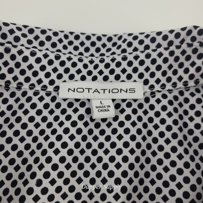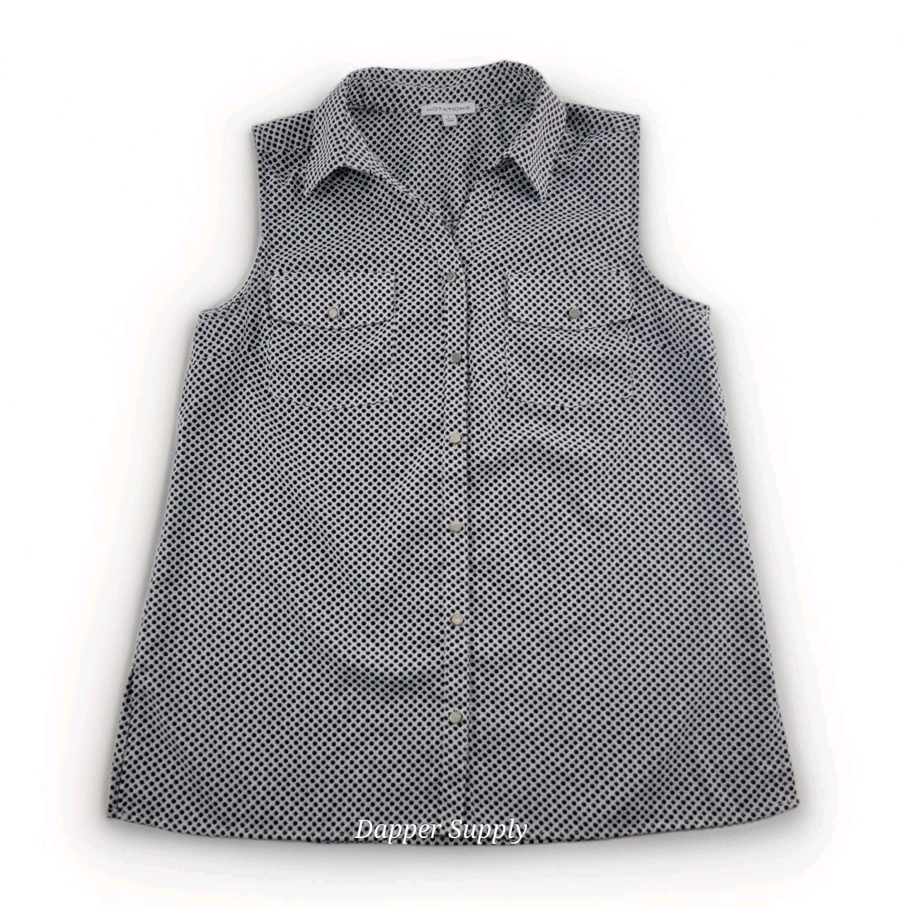 Notations Womens Top Sz L Sleeveless Button Front Blouse Black White Geometric