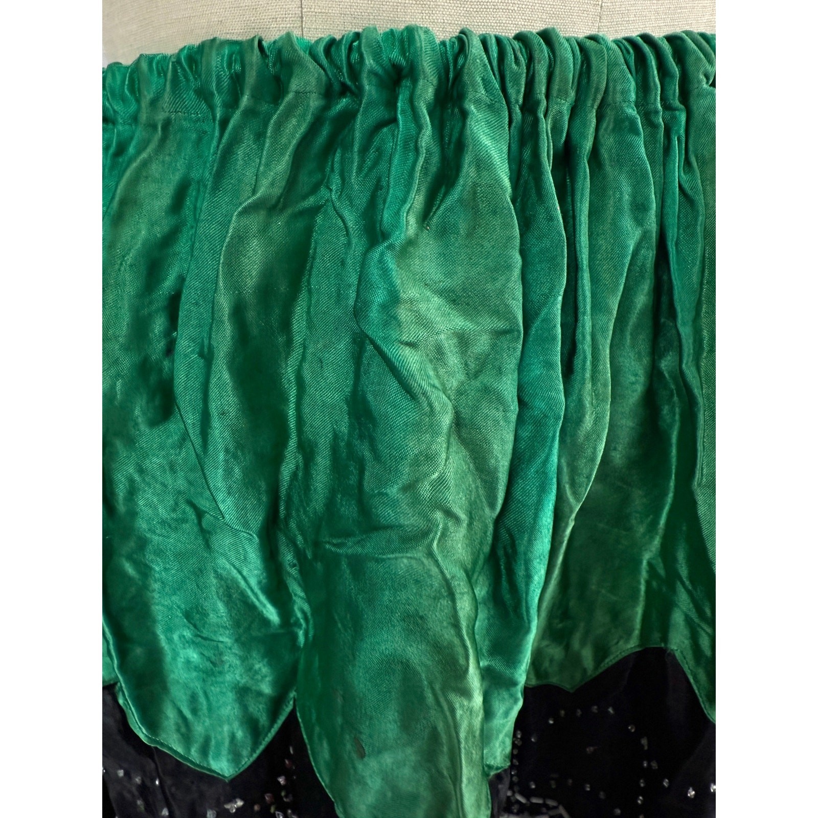 The overall look of the skirt, particularly the cut and movement at the hem, strongly evokes the 1920s flapper aesthetic. This piece carries the charm of an item lovingly crafted or reimagined almost a century ago.