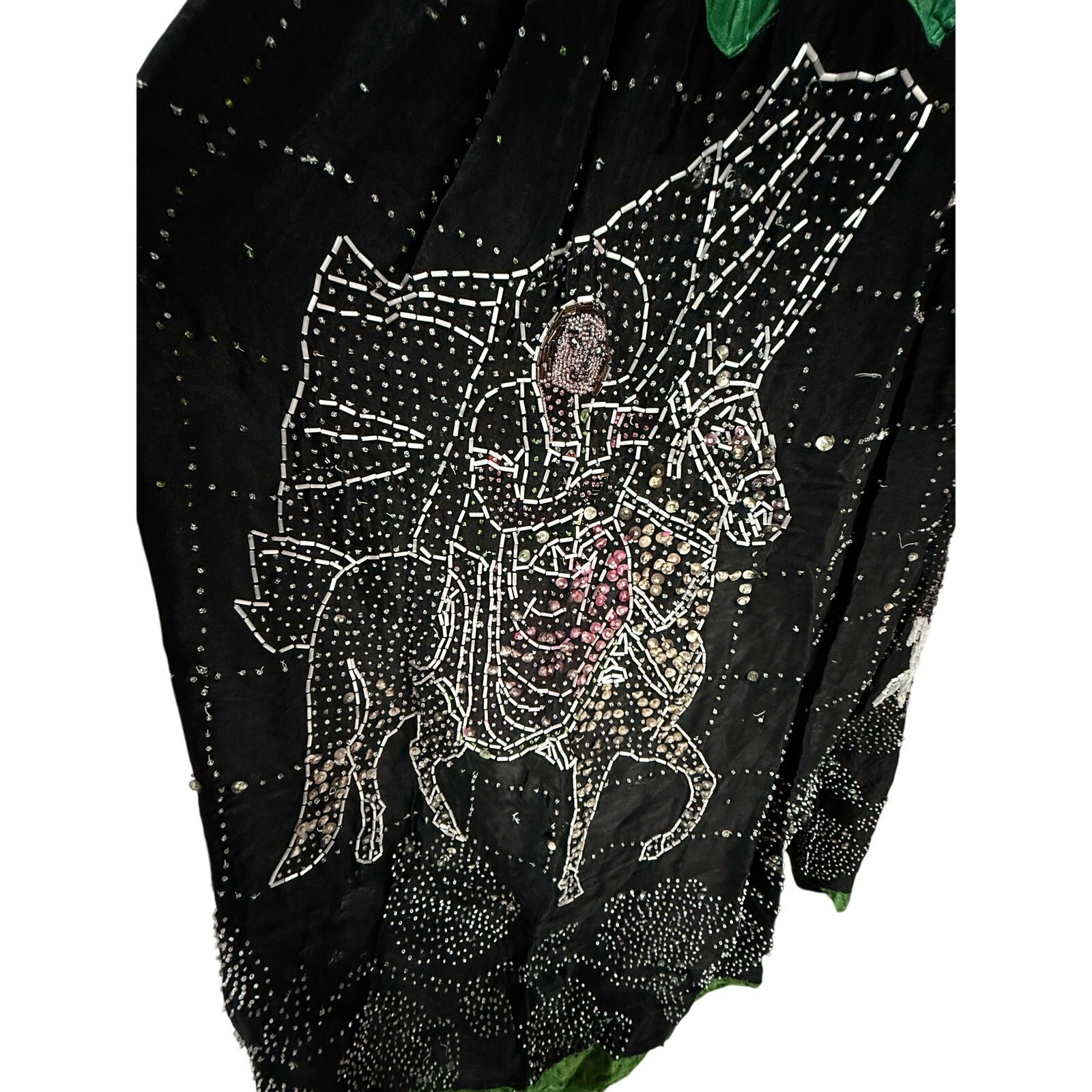 Vtg 1920s Upcycled Beaded Art Skirt Woman on Horse Scene Flapper Era Unique OOAK