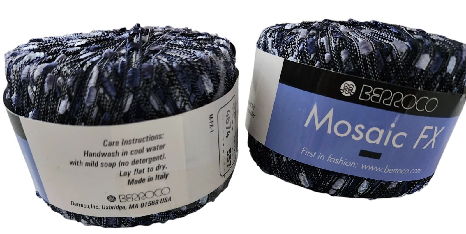 A versatile rayon Mosaic FX yarn 2 skeins suitable for a variety of knitting or crocheting projects. Offered in blue palette, provides a chic touch to creative designs. Each skein includes 78 yards. ? Made in Italy