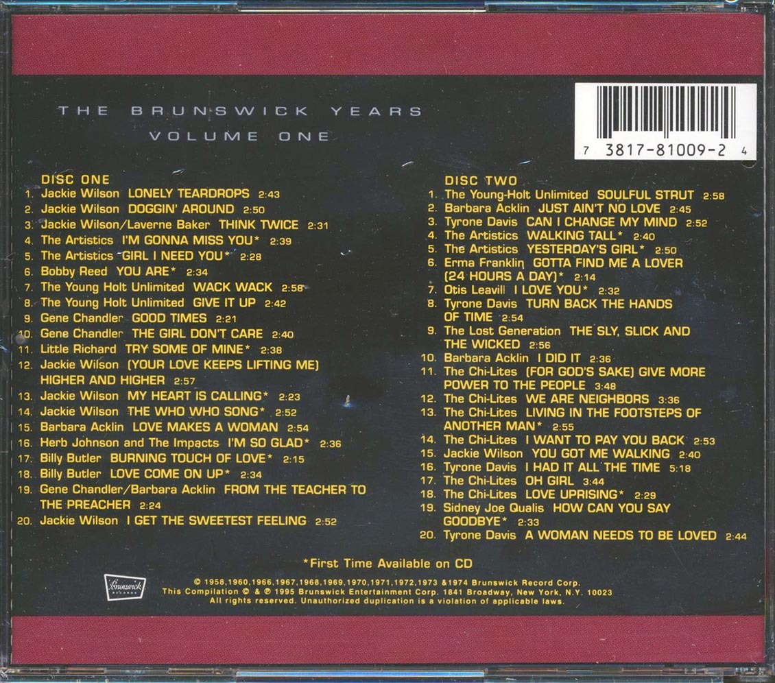 Jackie Wilson, The Chi-Lites, Gene Chandler, Etc. - The Brunswick Years Volume 1 (40 tracks) (2xCD)