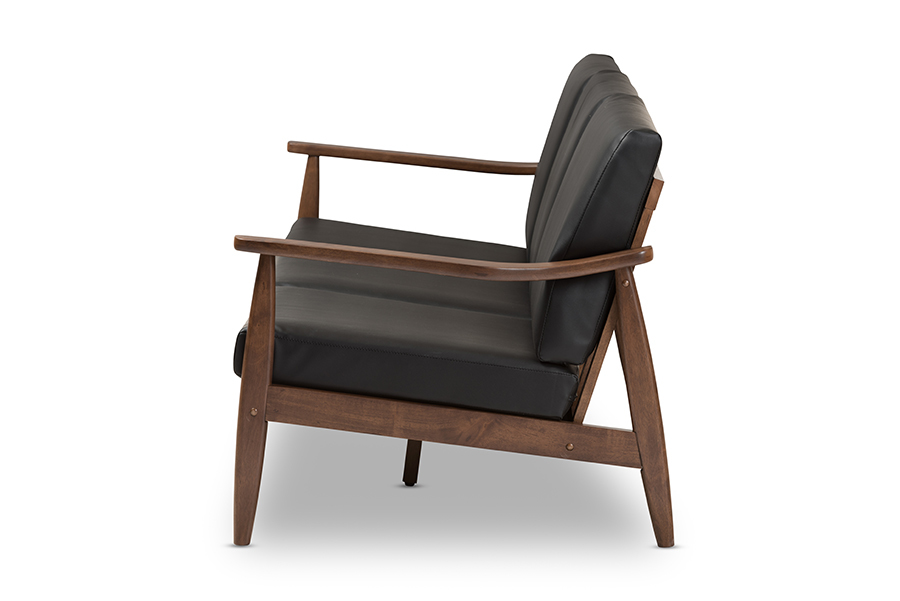 Features: Constructed from rubberwood, MDF wood, and LVL Walnut brown finish Finishing: dark walnut Removable cushions in faux leather Sloping armrests with splayed legs Solid and Quality Construction Set Includes: One (1) Sofa