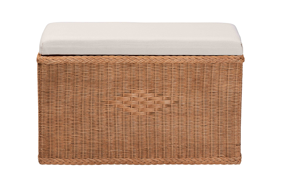 Ariba Braided Natural Rattan Storage Bench with Cushioned Lift-Top Lid