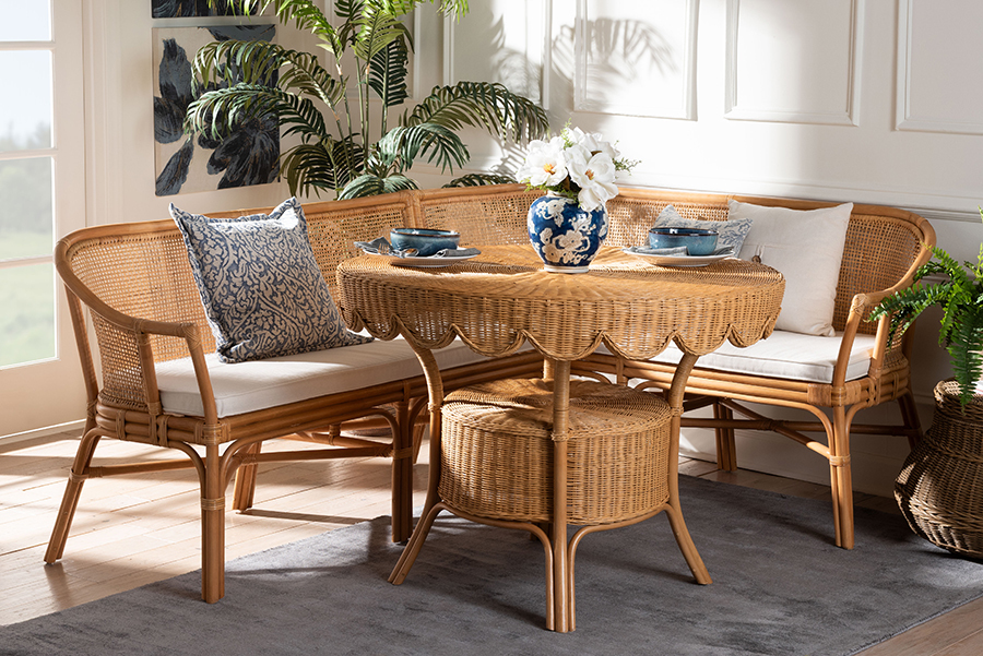 Caden 3-Piece Natural Rattan Dining Nook Set