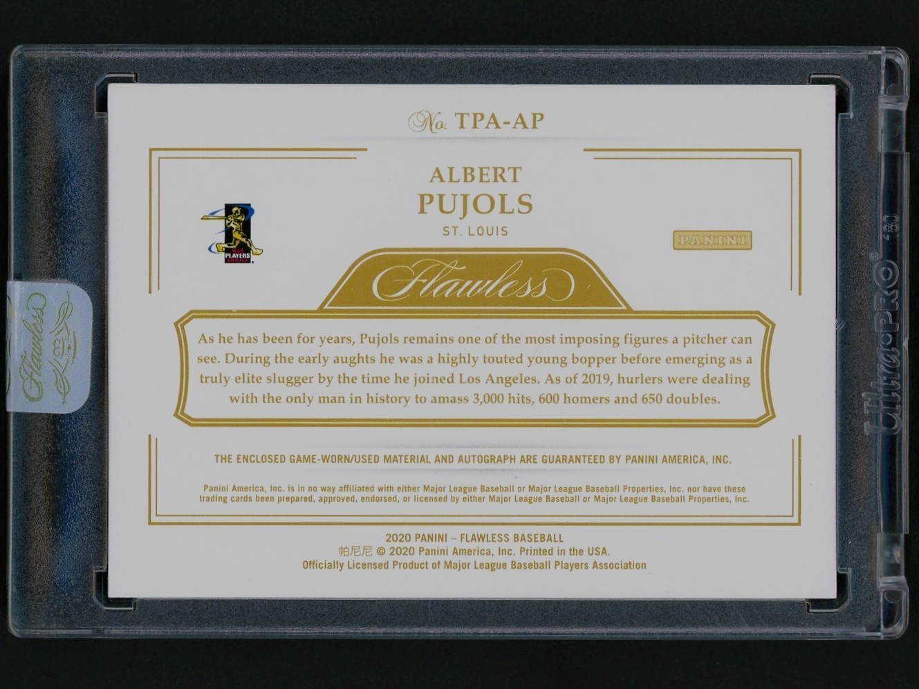 2020 Panini Flawless Albert Pujols Game-Used Triple Logo Tag Patch Auto #5/5