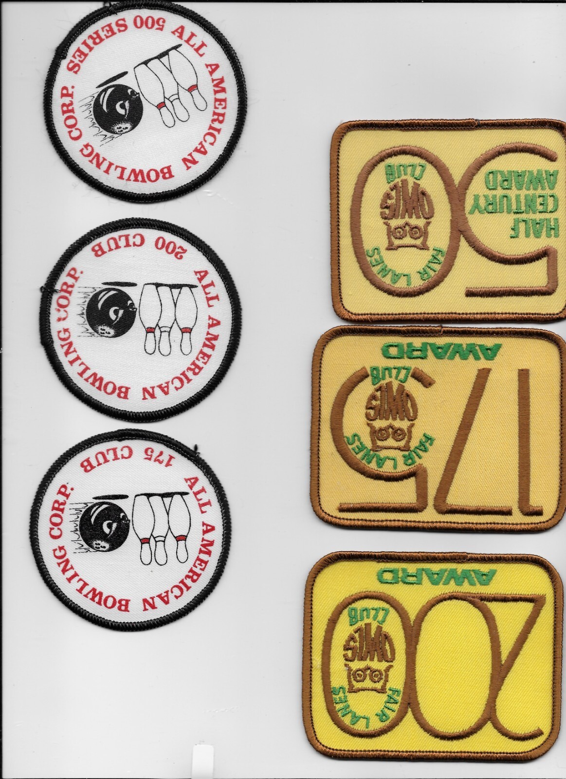 WIBC Bowling Patches All American Corp Fair Lanes Class B senior Champions 2 pin
