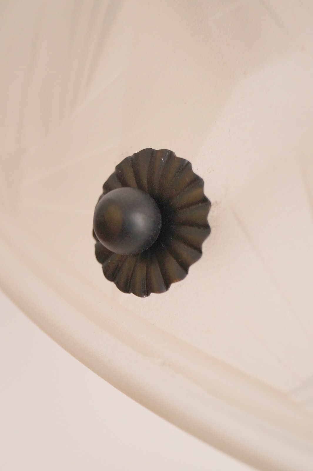 Important: We recommend using only LED lamps (filament bul!) For each of our lights. In addition to that of up to 12 times higher efficiency, the very low heat development of an LED bulb ensures the lifespan of the electrical system and the precious original glasses of its lamp. LED lamps available everywhere or here . Also suitable for LED/energy-saving bulbs with higher light output. Sale without decoration and lamp! Further Art Nouveau lights in our shop.