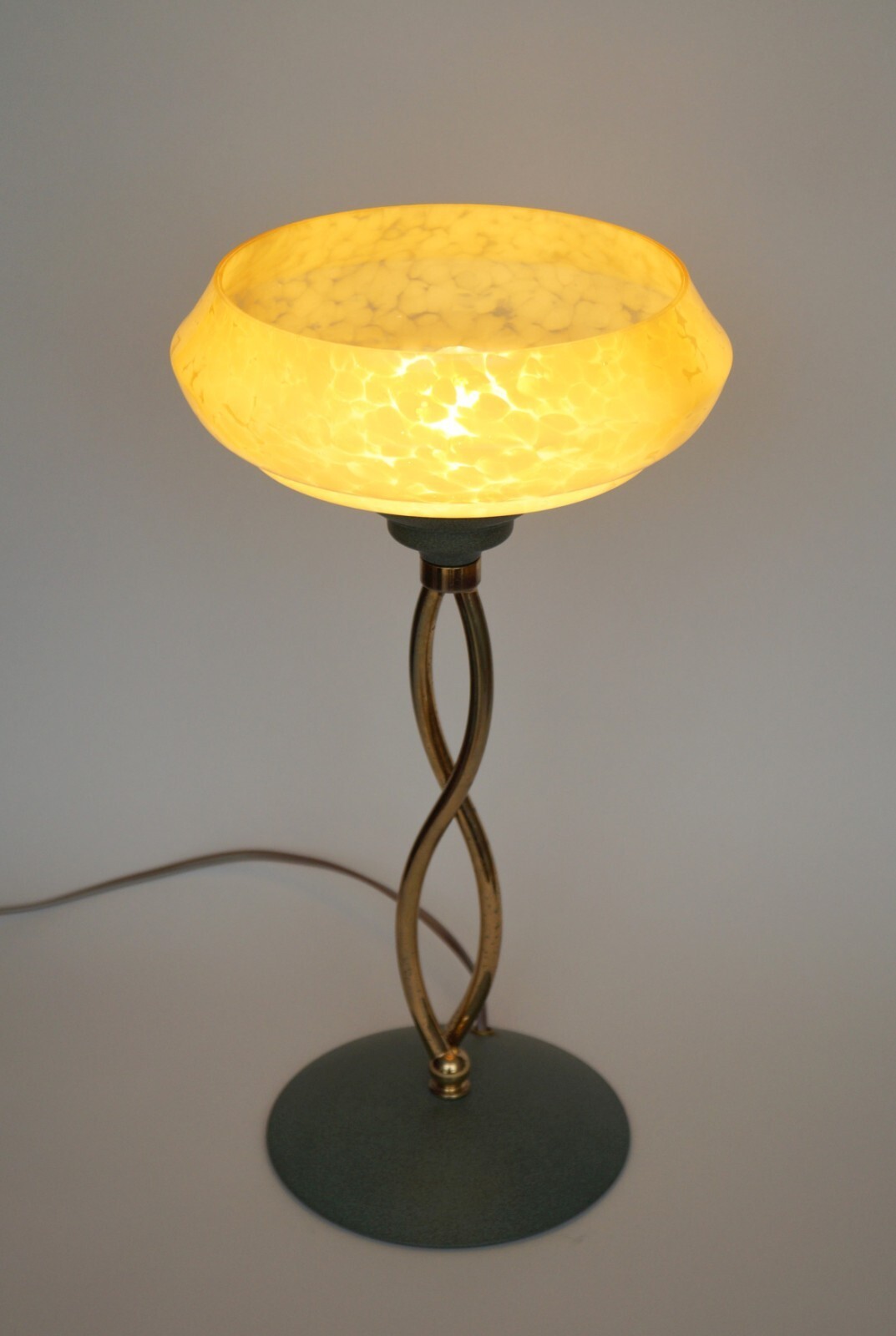 Unique Art Deco Art Nouveau Table Lamp "Golden Globe" brass lamp Antique Glass (no.