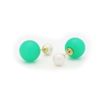 Fronay LIATURG Faux Green White Pearls Double Sided Tribal Earrings - 925 Sterling Silver