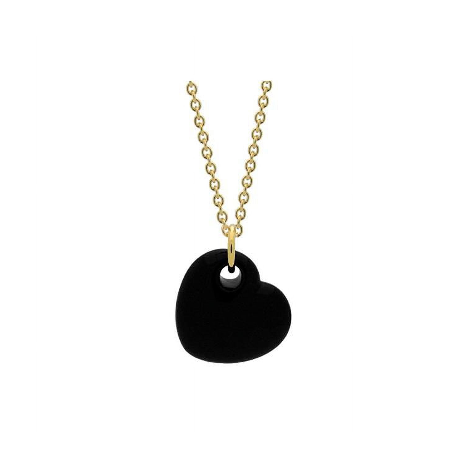 Fronay 15 in. 18k Gold Plated Black Enamel Puffy Heart Necklace