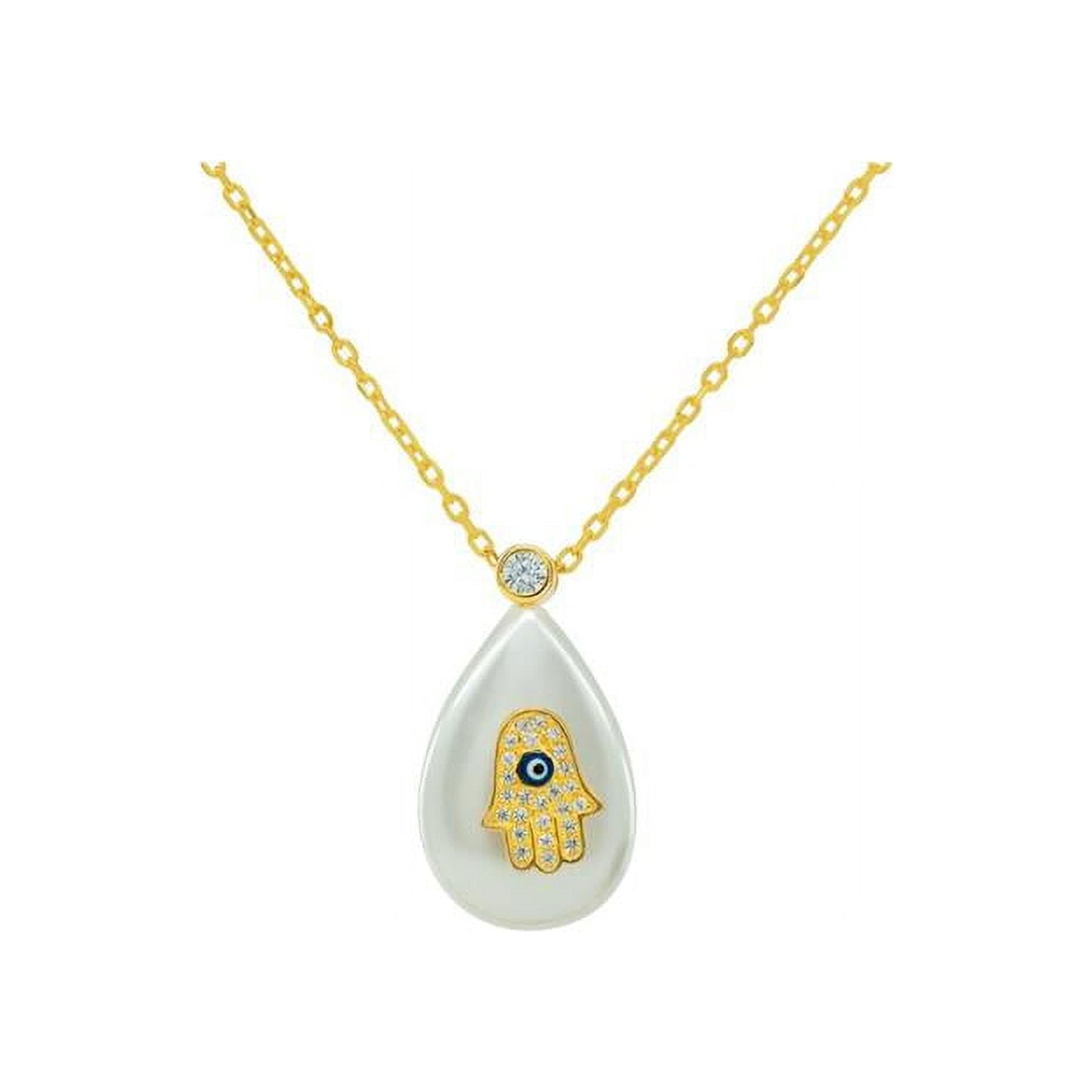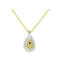 Fronay 111808G 15.5-17.5 in. Mother of Pearl Hamsa Drop Pendant Necklace