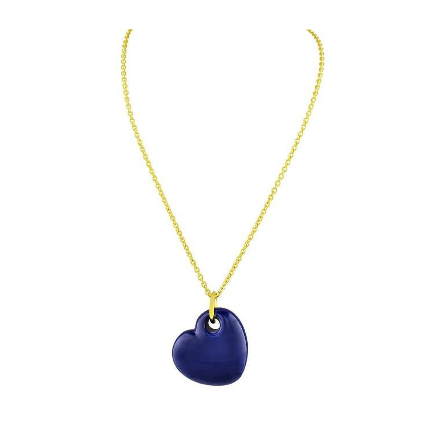 Fronay 15 in. 18k Gold Plated Blue Enamel Puffy Heart Necklace