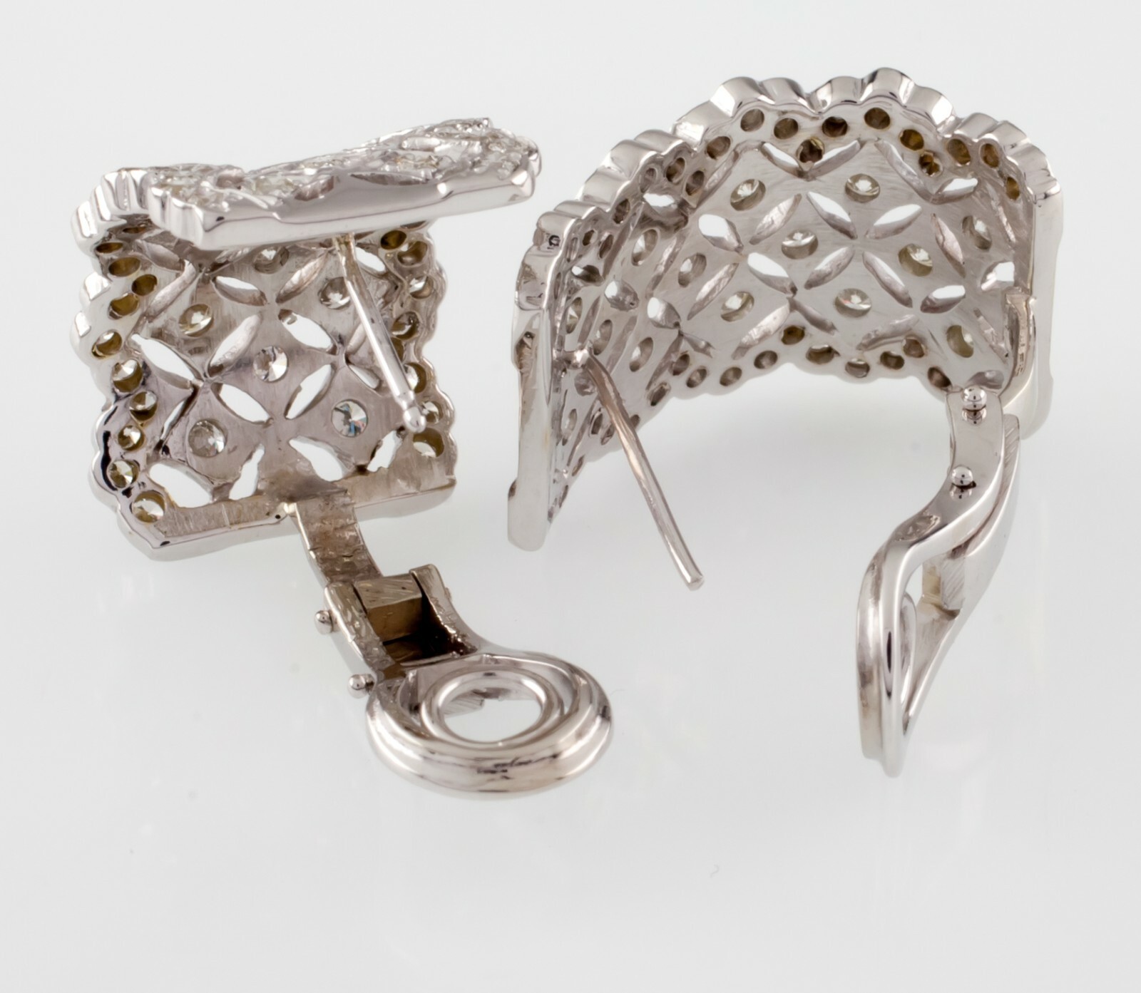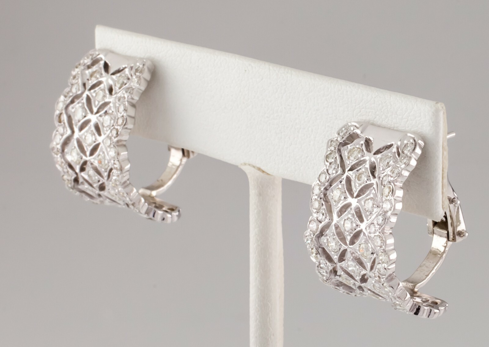 1.80 Karat Diamant 18k Weiss Gold Plakette Ohrringe M / Omega Verschluss