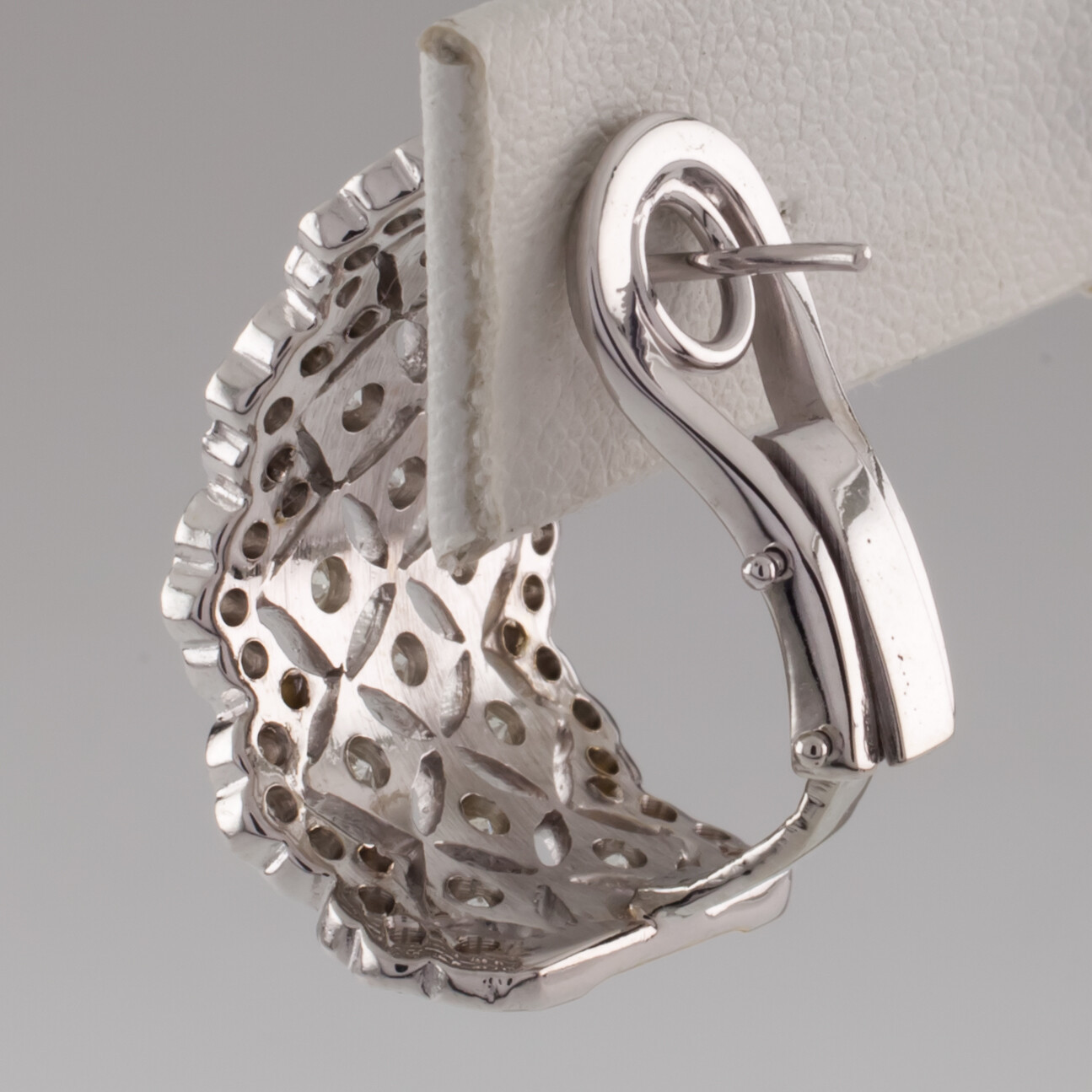14k Weißgold -Runde Diamant Plaque Huggie Ohrringe mit Omega -Rücken TDW 2,50 ct