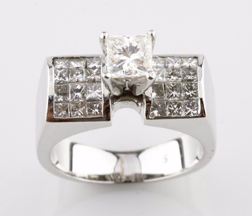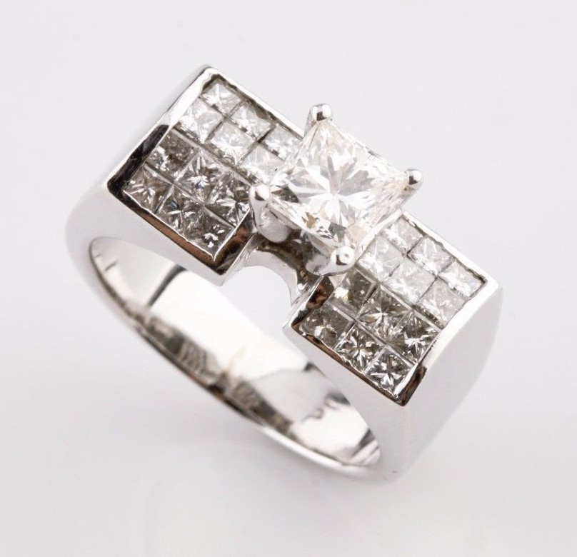 18k Weißgold Princess Diamant Plakette Ringgroße 6 1.60 Karat Gorgeous Geschenk