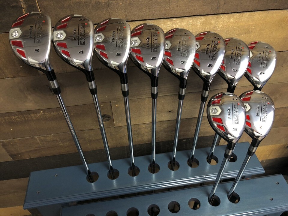 Replace Your Entire difficult to use iron set with the iDrive all hybrid iron set! Improve your Hybrid-Iron game! Benefits of the iDrive Hybrid: -More Weight Positioned Behind The "Sweet Spot" -Deeper Cavity Back Creates A Tighter Shot Dispersion, Which Increases The Accuracy On Off Center Hits. -Aerodynamic Design Creates A Reduction In Drag, Which Leads To Higher Club Head Speeds -Wide To Thin Crown Design Creates A Lower CG To Promote Higher Launch Angle For More Distance -Lightweight Premium Steel Shafts Promotes Faster Swing Speed For Greater Distance. Your Custom Made iDrive Golf Hybrid Is Assembled By Hand In Riverside, CA, USA And Delivered Direct To Your Door.