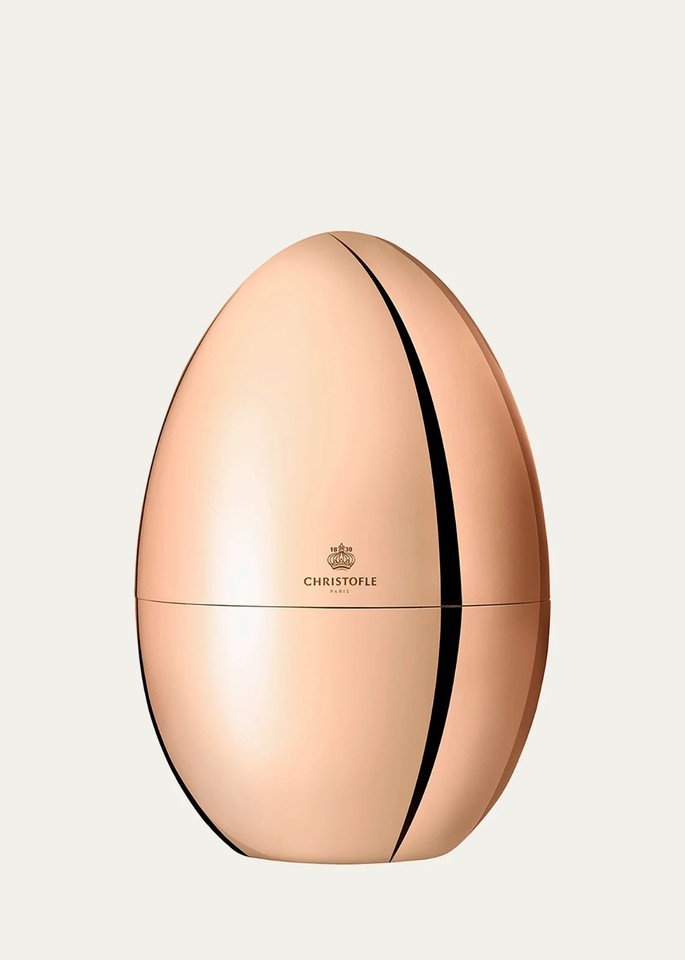 Christofle blends two centuries of tradition with Christofle MOOD PRECIOUS. Christofle Mood Precious offers everyday luxury living with easy to store and easy to use service of 6. The coffee spoons are 18kt.Pink Gold plated while all other pieces are silver plated for a contemporary and sophisticated combination. The egg shaped storage caddy is copper-colored stainless steel featuring an interior walnut wood disc.