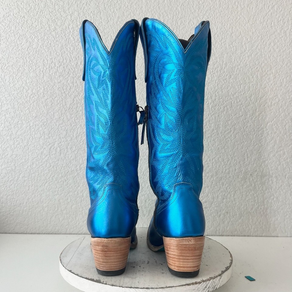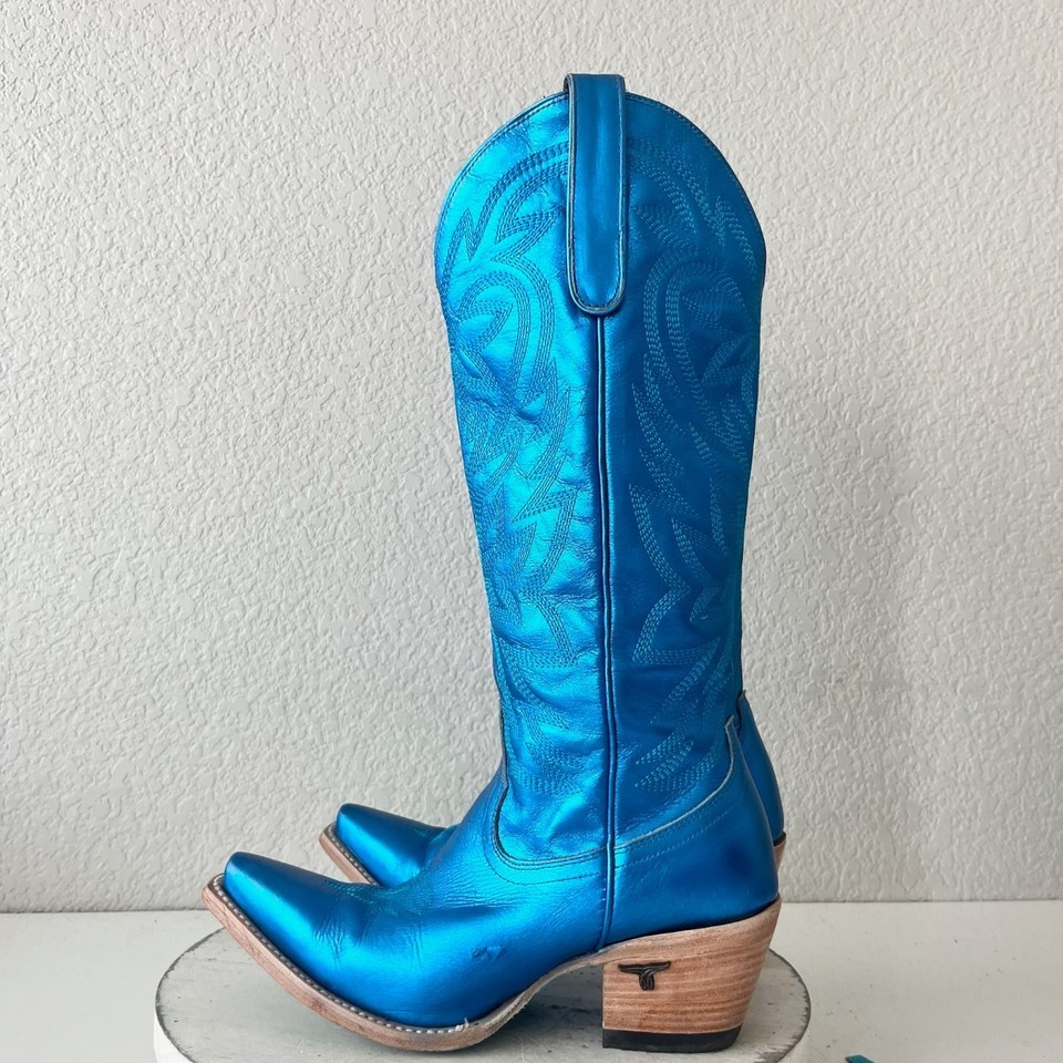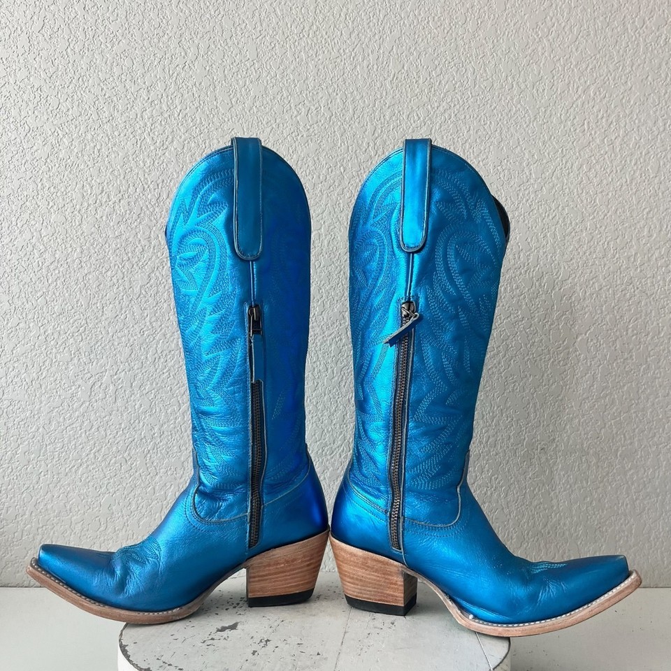 Lane SMOKESHOW Womens Cowboy Boots in Metallic Cobalt Blue Leather with a Western Stitched Snip Toe and 15" Mid Calf Tall Shaft