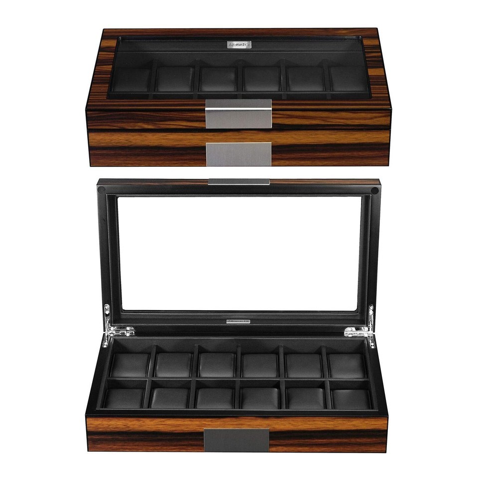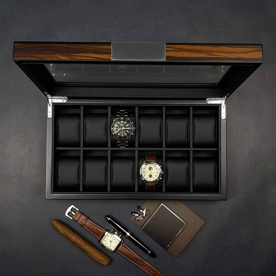 Twelve large slots: capacious room for your watches, watch case display organizer with a glass window you'll love looking at your collection of watch neatly displayed in this fine box.