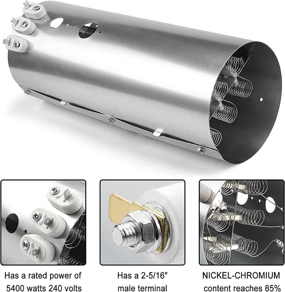 Premium Quality: Dryer heating element replacement parts are made by durable high quality material and well-tested by the manufacturer (Guaranteed to Exceed OEM Requirements). Rated at 5500 Watts 240 Volts 3 coil element with housing. Easy to install, saves time and money ?Suitable fit for most Electrolux manufactured dryer models: Cro-sley Electrolux Frigi-daire Ken-more Gib-son, Kelvi-nator etc dryers