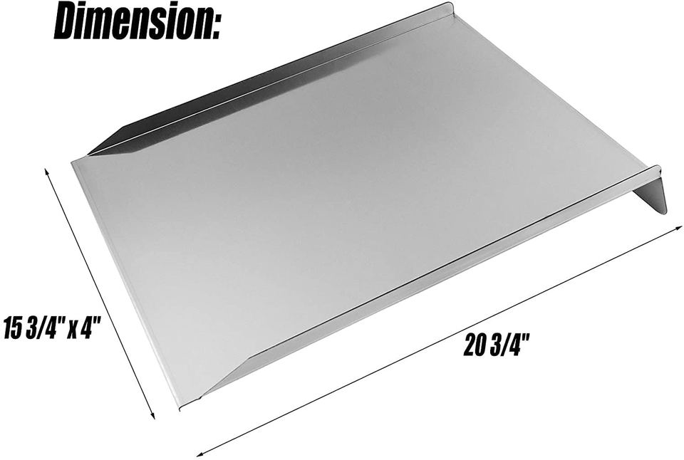 Stainless steel drip pan Heat Baffle Dimensions: 20.7" x 15.7" (Measure dimensions of your old heat diffuser)