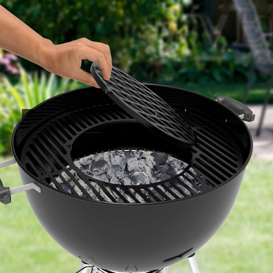 The grill accessory cast iron sear grate makes it easy to add charcoal while grilling, Just remove our grate insert, No need to remove the outer grate.