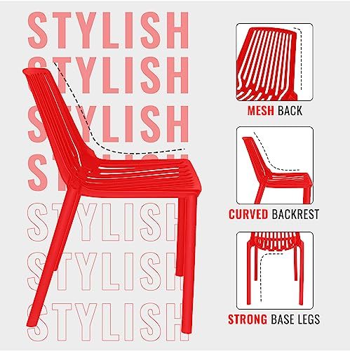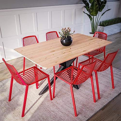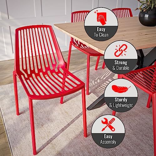 LeisureMod Mid-Century Modern Plastic Stackable Accent Side Chair for Kitchen an