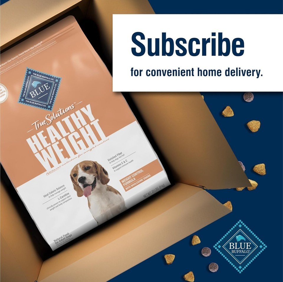 Help your adult dog maintain a healthy weight with BLUE True Solutions Weight Control, a premium dry dog food thoughtfully crafted to support healthy weight management.