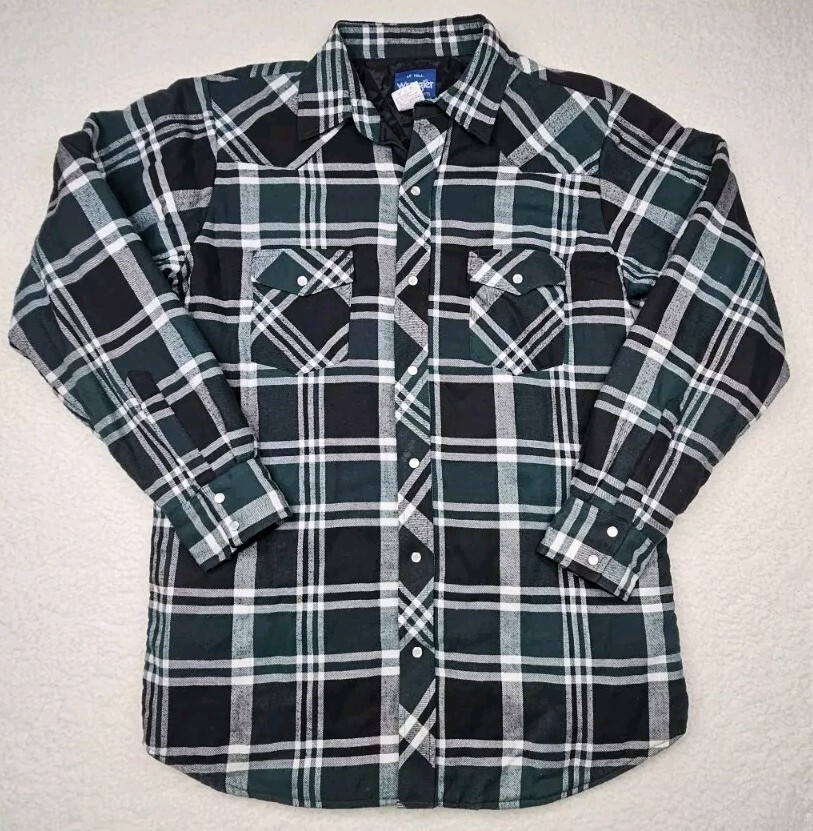 Vtg Wrangler Mens Long Sleeve Pearl Snap Heavy Flannel Shirt Size Large Tall
