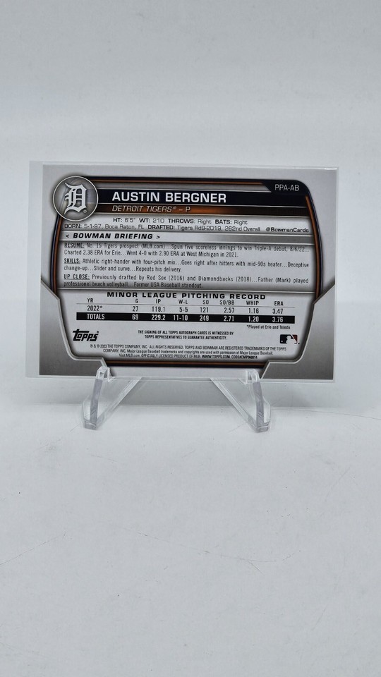 2023 Bowman Austin Bergner 1st Bowman Auto Detroit Tigers PPA-AB Rookie