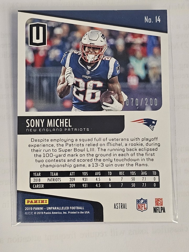 2019 Panini Unparalleled Astral #70/200 Sony Michel #14 Patriots