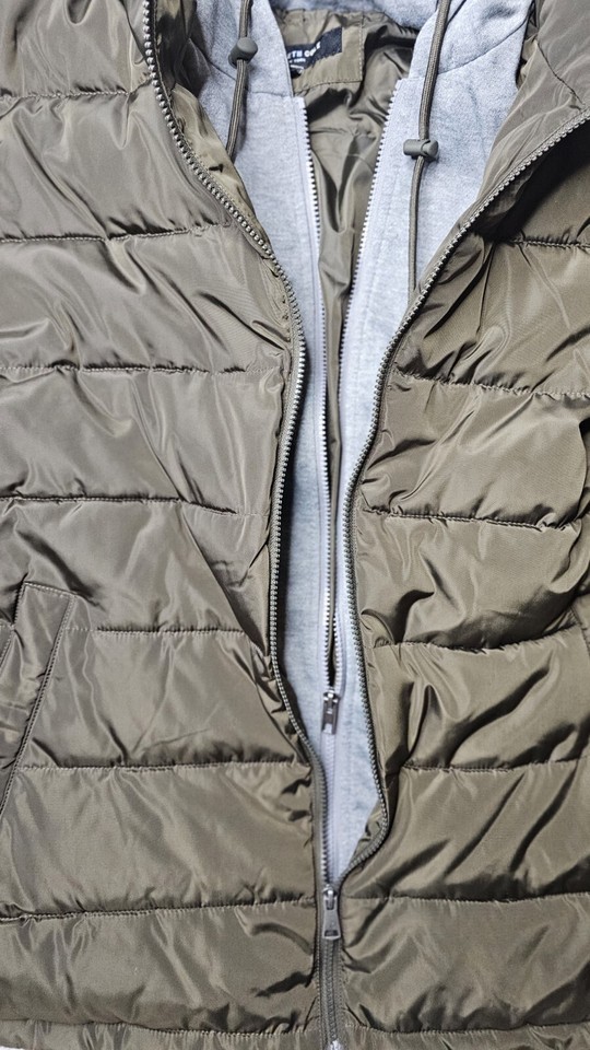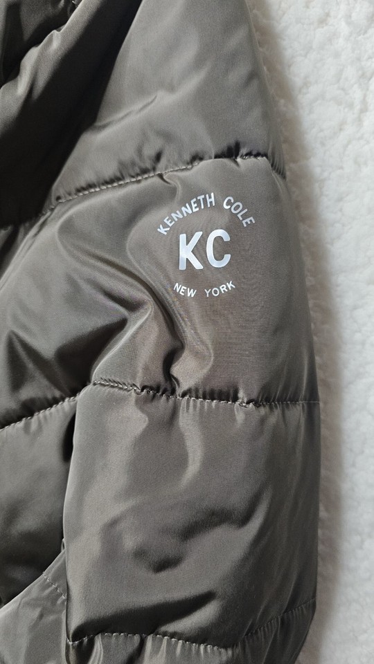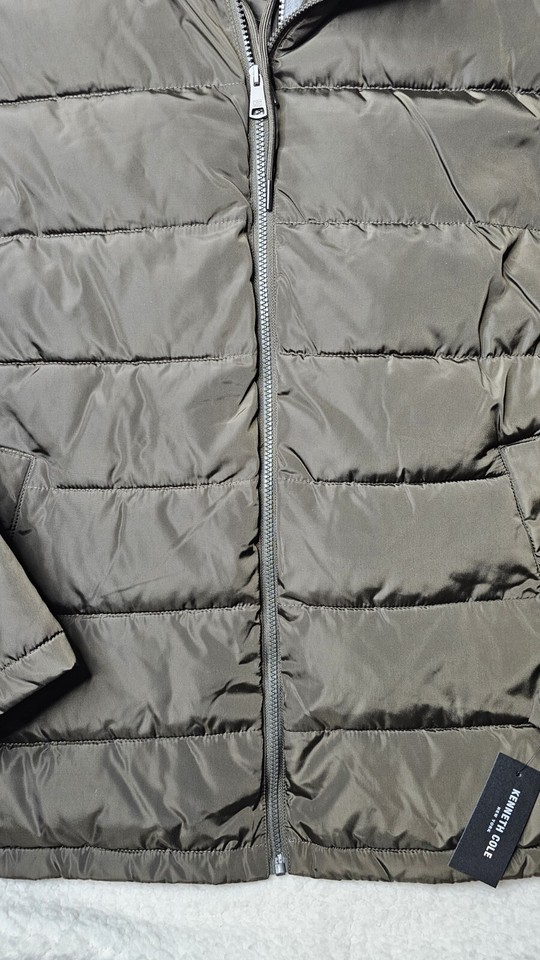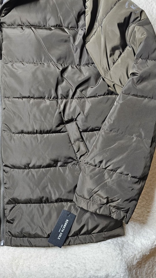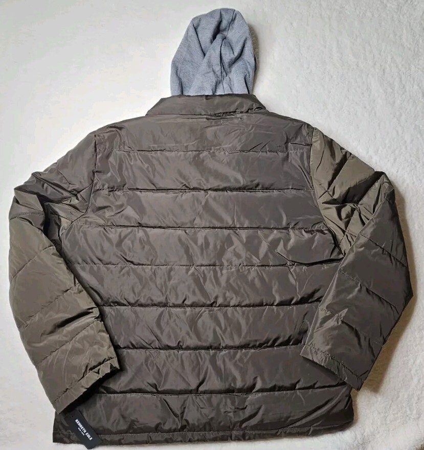 Men’s Kenneth Cole Quilted Puffer Hipster Jacket with Hood Olive Green 2XL New