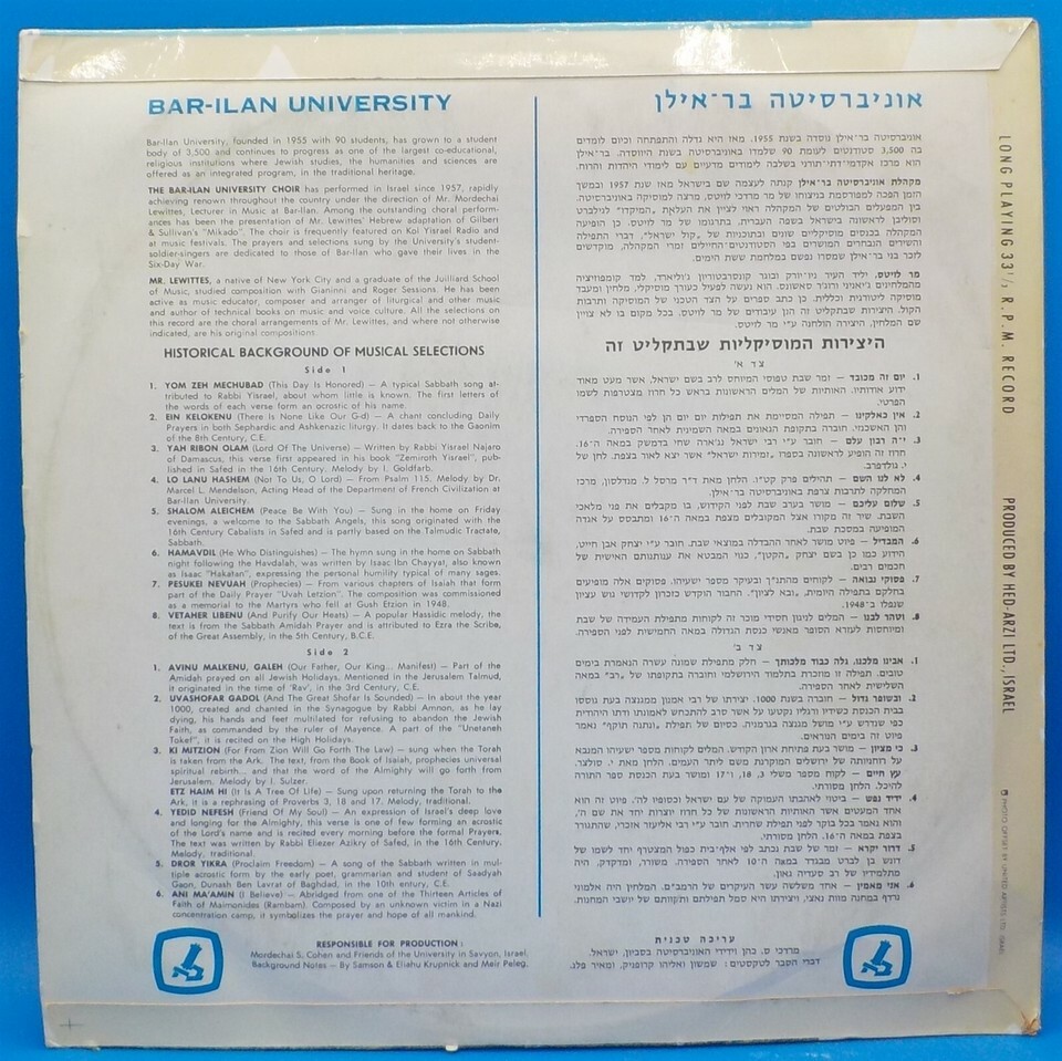 The Bar Ilan University Choir, Mordechai Lewittes LP Concert Religious Music BX7