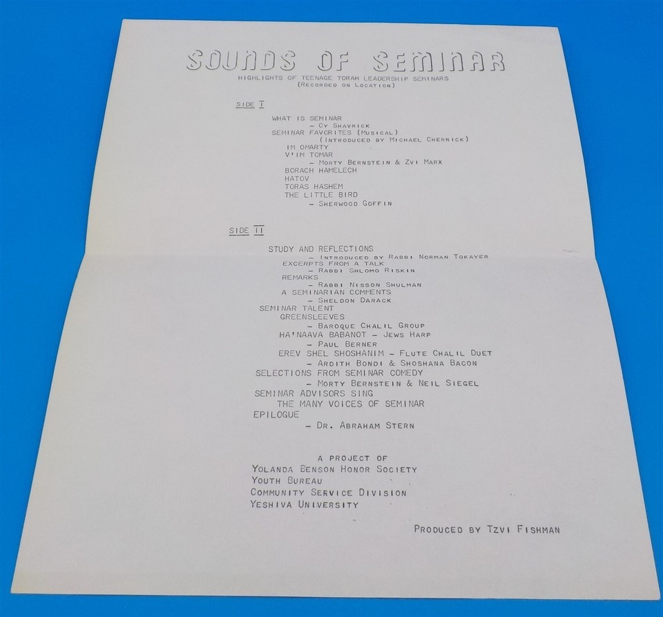 Yeshiva University's Torah Leadership Seminar LP "Sounds Of Seminar" Jewish BX5