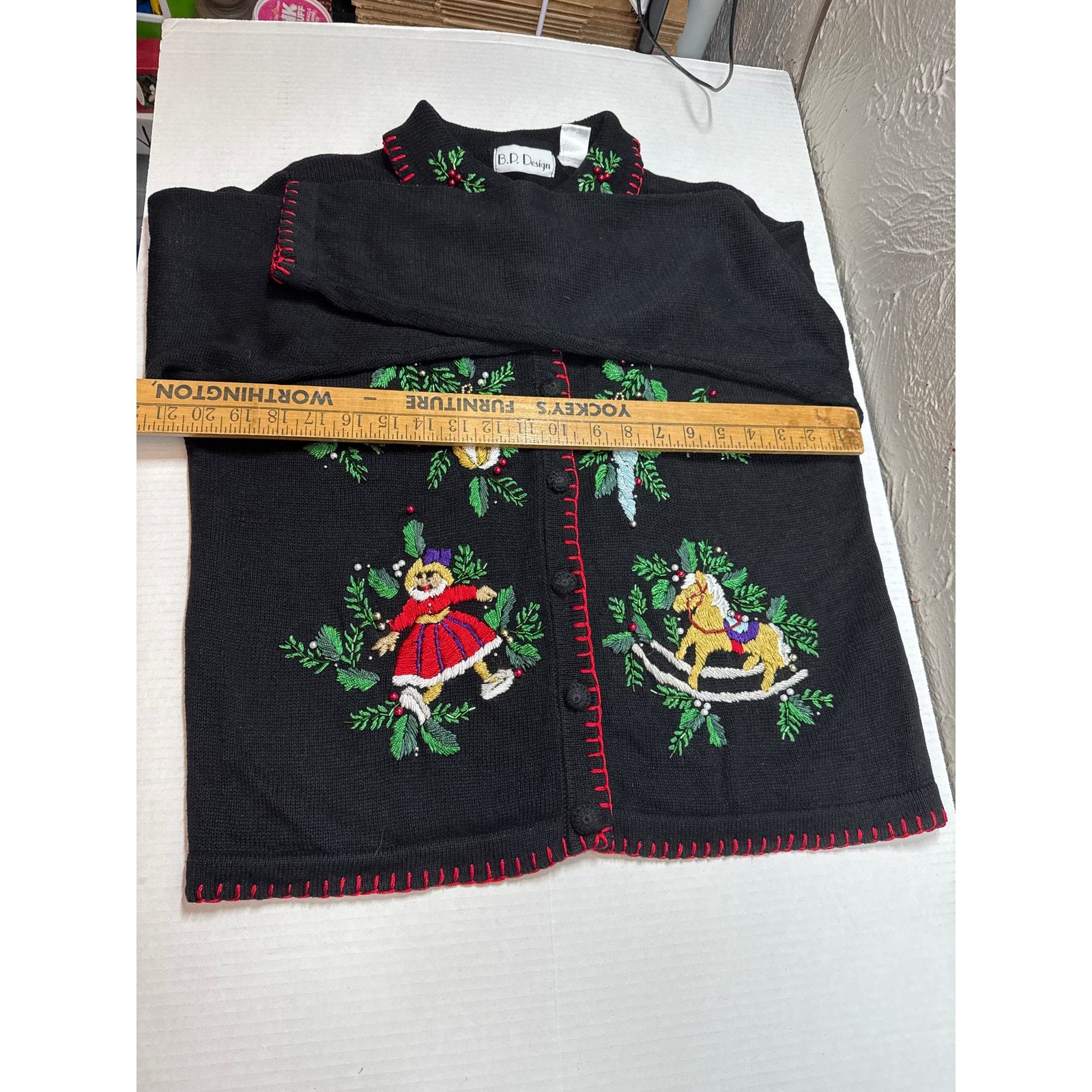 BP Design Ornaments Christmas Beaded Embroidered Knit Cardigan Sweater SZ Large